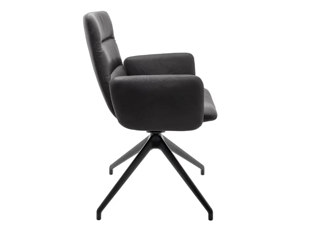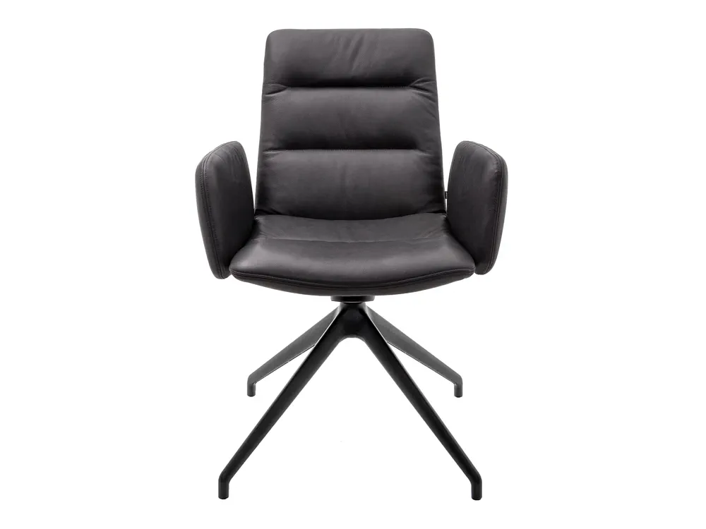 Introducing the ARVA LIGHT Swivel Trestle Chair, an elegant solution for dynamic spaces. This chair boasts a unique Mid Century design, ergonomically shaped for exceptional back support. Its firm upholstery ensures lasting comfort while the beautifully designed armrests add a touch of sophistication. Perfect for both home and office environments, it combines stylish aesthetics with innovative functionality. Customize it with your choice of coverings to reflect your personality. Experience the blend of modern design and comfort with ARVA LIGHT.