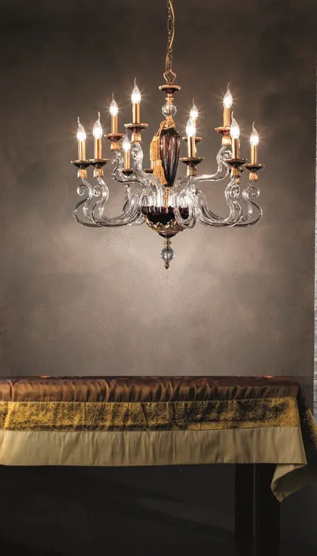Chandelier with Swarovski Crystals BAROCCO L8+4 Euroluce Lampadari