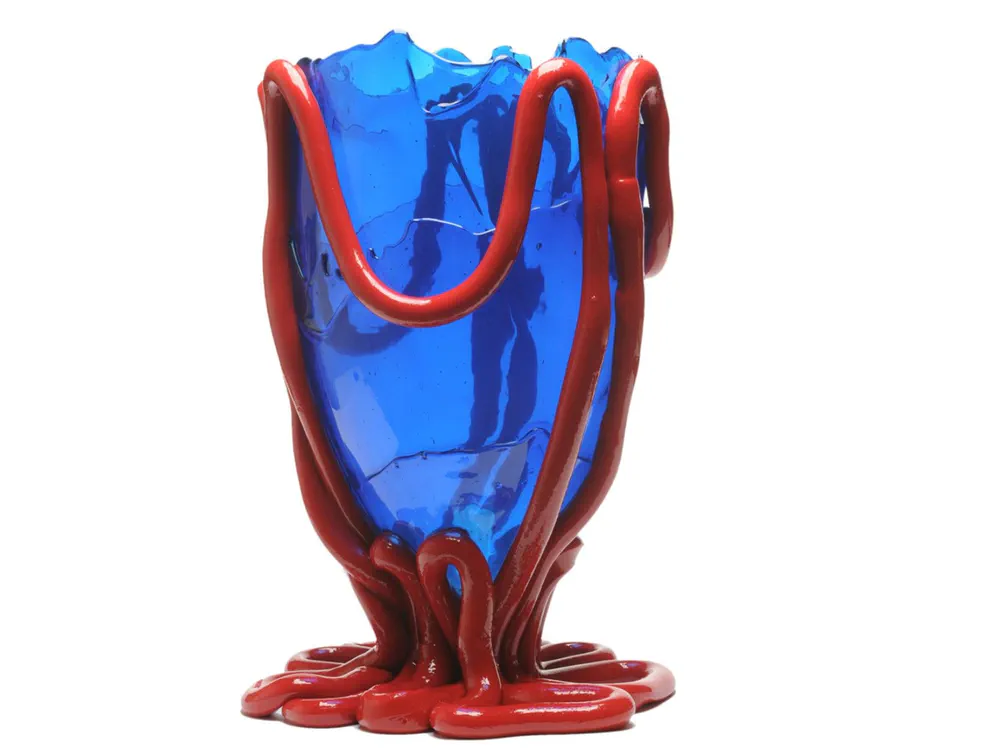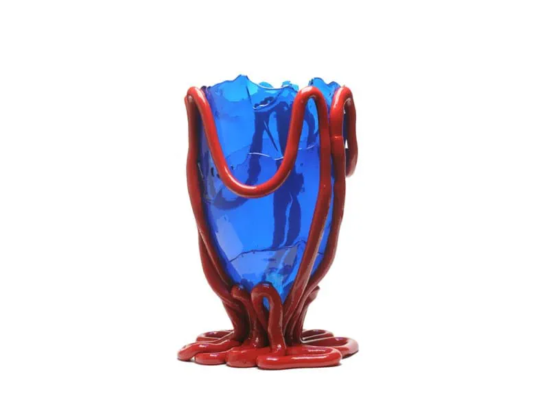 Introducing the Indian Summer Resin Vase, a stunning piece designed by Gaetano Pesce for the exclusive Fish Design collection. Made from soft resin, this vase is both aesthetically pleasing and unique, as each piece is hand-made with slight variations in colors. Available in Clear Blue and Matt Red, it adds a touch of contemporary flair to any home. Elevate your decor and create a statement with this one-of-a-kind vase that reflects artistic craftsmanship. Customize your space with its versatile design and enjoy a blend of beauty and functionality in your living area.