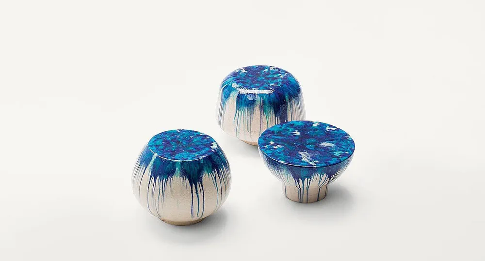 Discover the exquisite CALATINI low coffee table, a stunning piece of furniture that combines hand-decorated ceramics with contemporary design. Each table is uniquely crafted by Nicolò Morales, showcasing beautiful colors and patterns. The irregularities found in each table highlight the artistry and are key to its charm. Ideal for both indoor and outdoor use, the CALATINI also pairs perfectly with the Winter Set protection cover for durability. Elevate your living space with a one-of-a-kind statement piece that stands out in any interior environment.