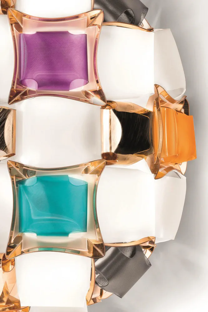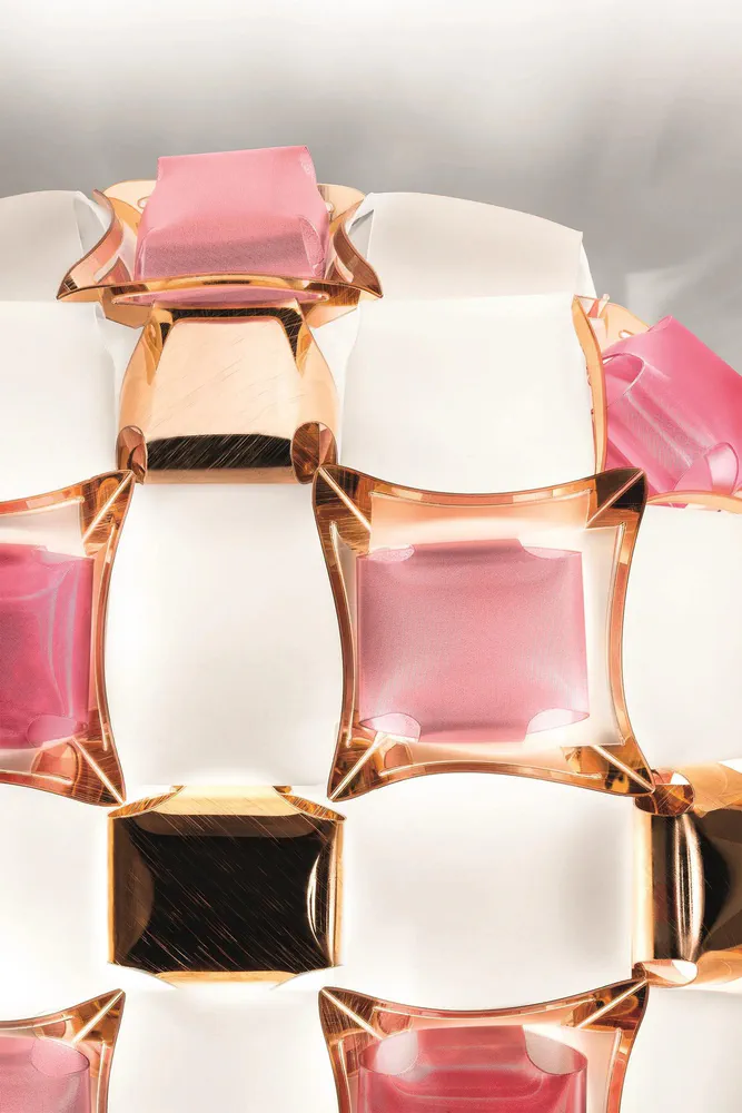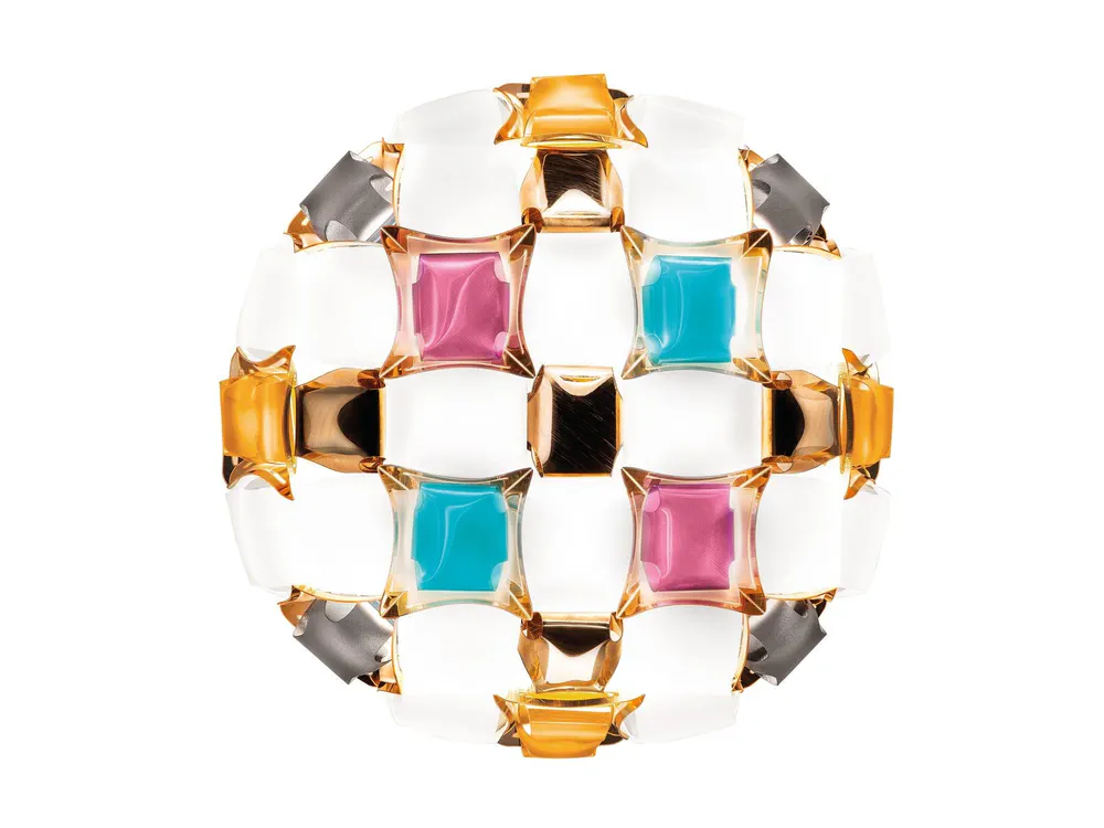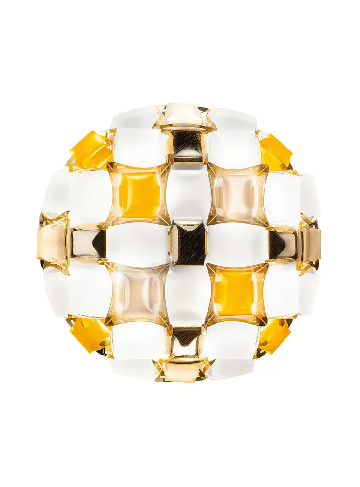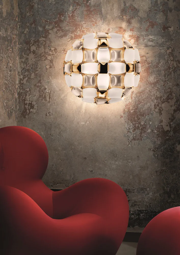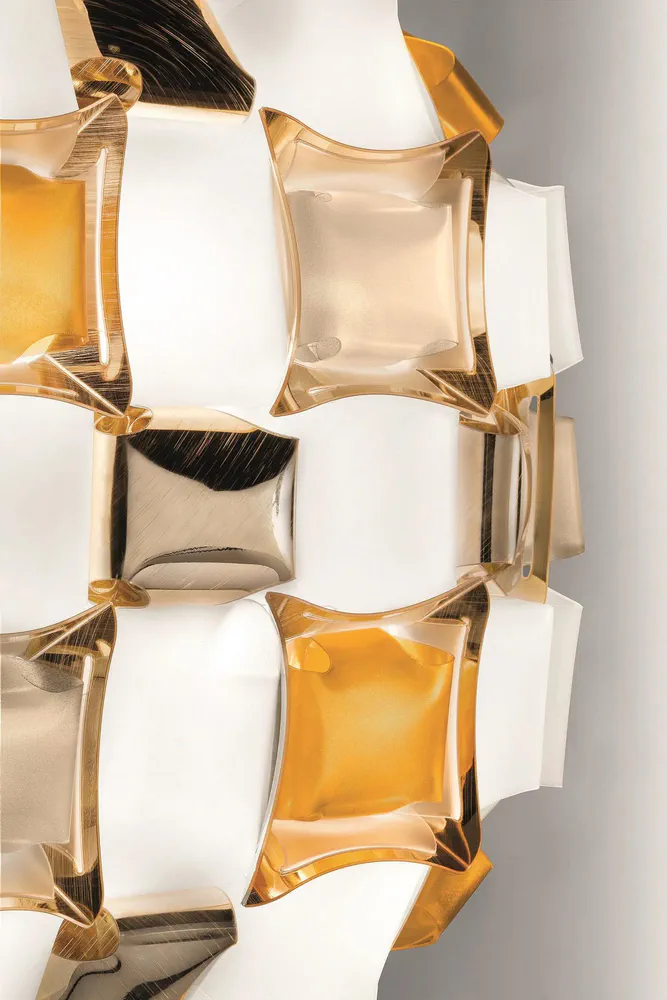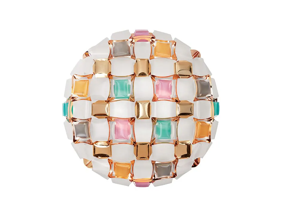 The Mida Ceiling Wall Lamp combines luxury and innovation with its exclusive magnetic system and exquisite design inspired by haute couture jewels. Handcrafted from high-quality Opalflex® and Lentiflex®, this lamp features a stunning array of polished cabochons and floral silhouettes in dazzling colors. Perfect for enhancing any room's ambiance, Mida is available in five captivating color options, including Multicolor and White/Gold, making it a versatile choice for modern interiors. Illuminate your space with Mida's sophisticated charm!