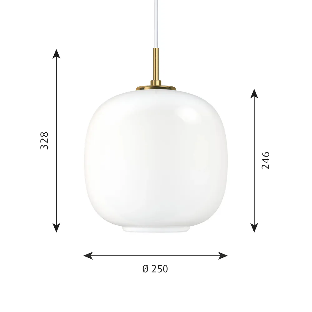 Illuminate your space with the elegant VL45 RADIOHUS opal glass pendant lamp, designed for both aesthetic and functional brilliance. Its glossy opal glass shade provides soft, diffuse light while the brushed brass pendant tube adds a touch of sophistication. Ideal for contemporary settings, this lamp is perfect for enhancing any room's atmosphere. With options for energy-efficient LED lighting, this pendant lamp ensures both style and sustainability. Easy to mount with a generous cable length of 4.4m, it's a seamless addition to your home. Elevate your decor today with the VL45 RADIOHUS!