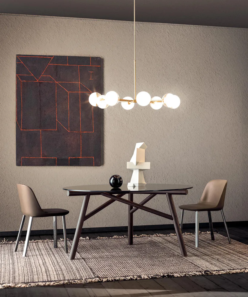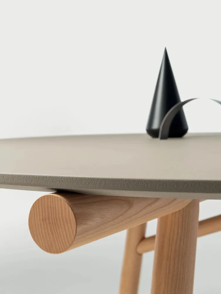 Introducing the Maestro Round Cement Table, a stunning blend of design and functionality. This piece, crafted with a wood structure and available in concrete, marble, or glass tops, showcases both aesthetic appeal and durability. Designed by Emilio Nanni, it balances geometric concepts with structural stability, making it a statement piece for any modern living space. Choose between solid wood or painted metal for the base, and elevate your dining or living experience with this iconic table. Make Maestro the centerpiece of your home.
