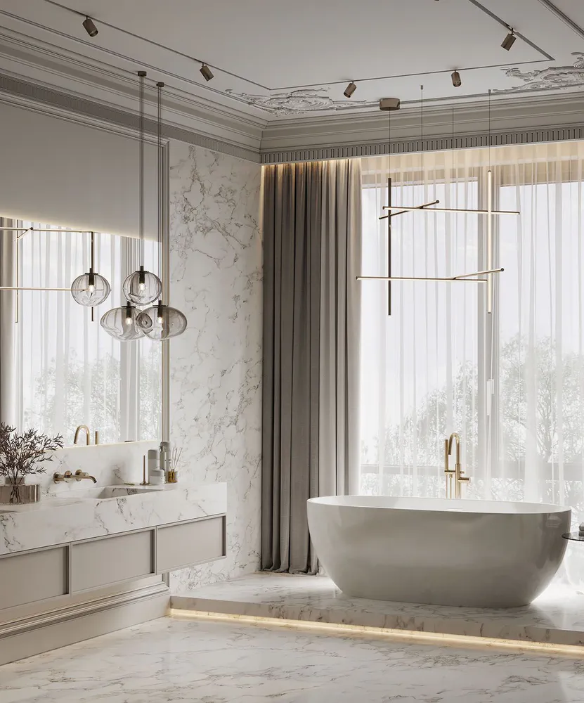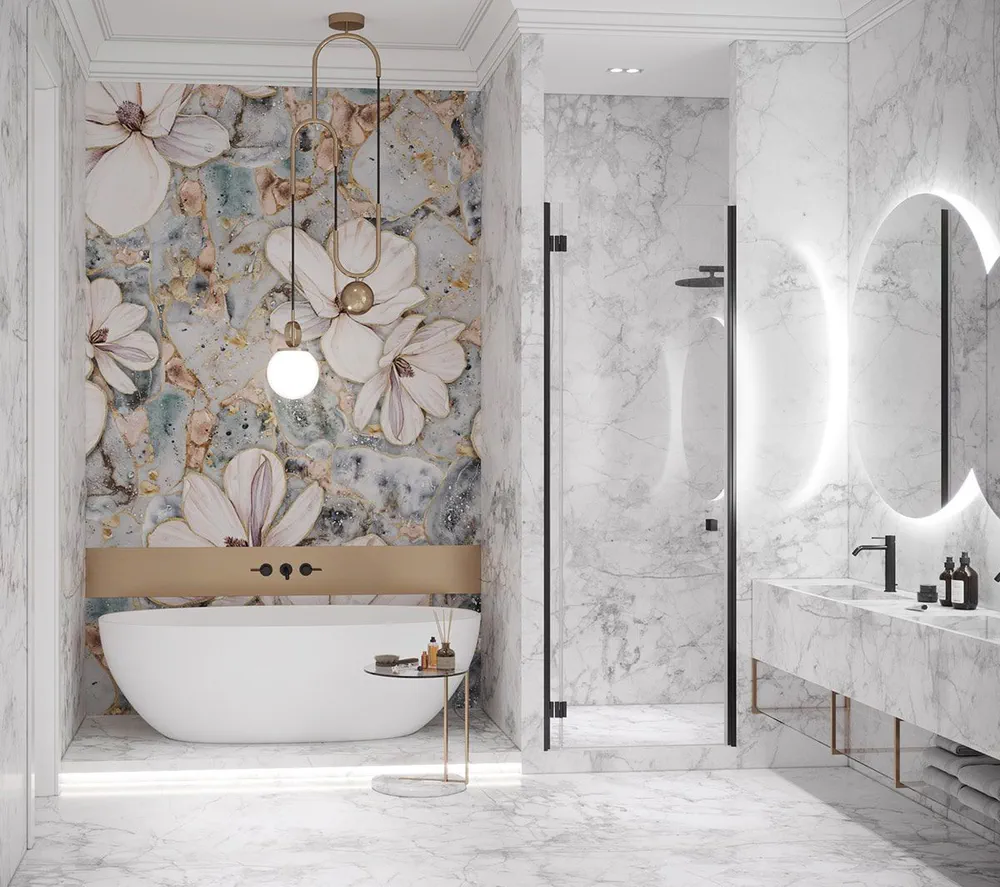 | Materialien | carrara marble, arabescato marble, pietra grey marble, panda marble |