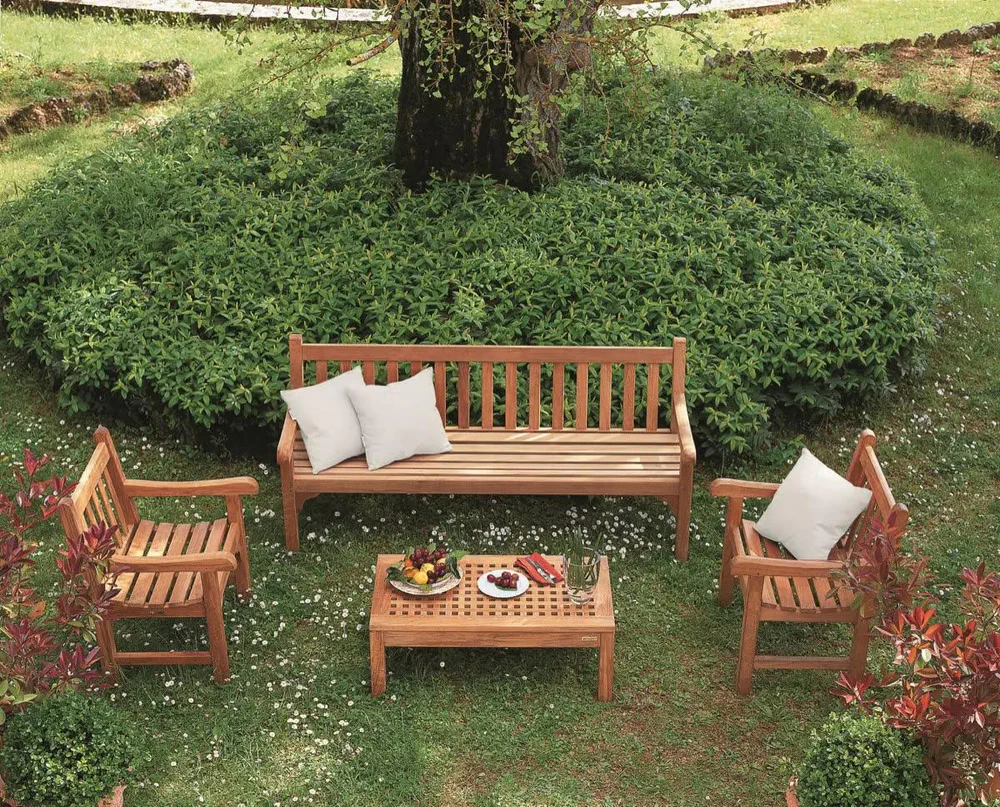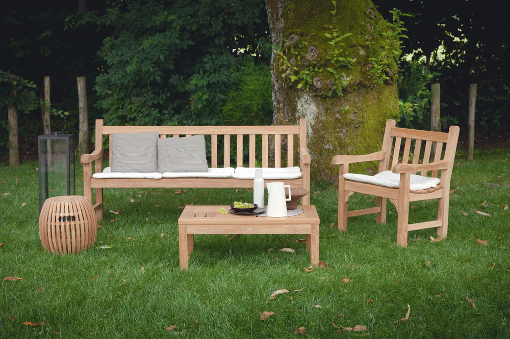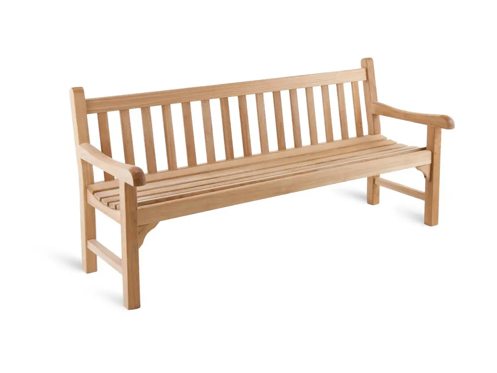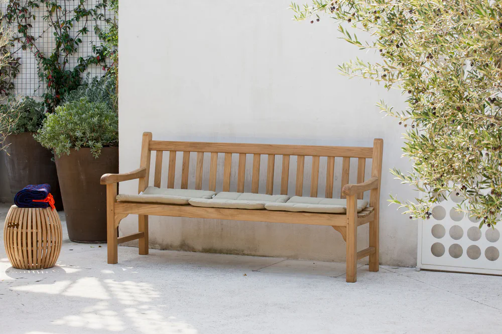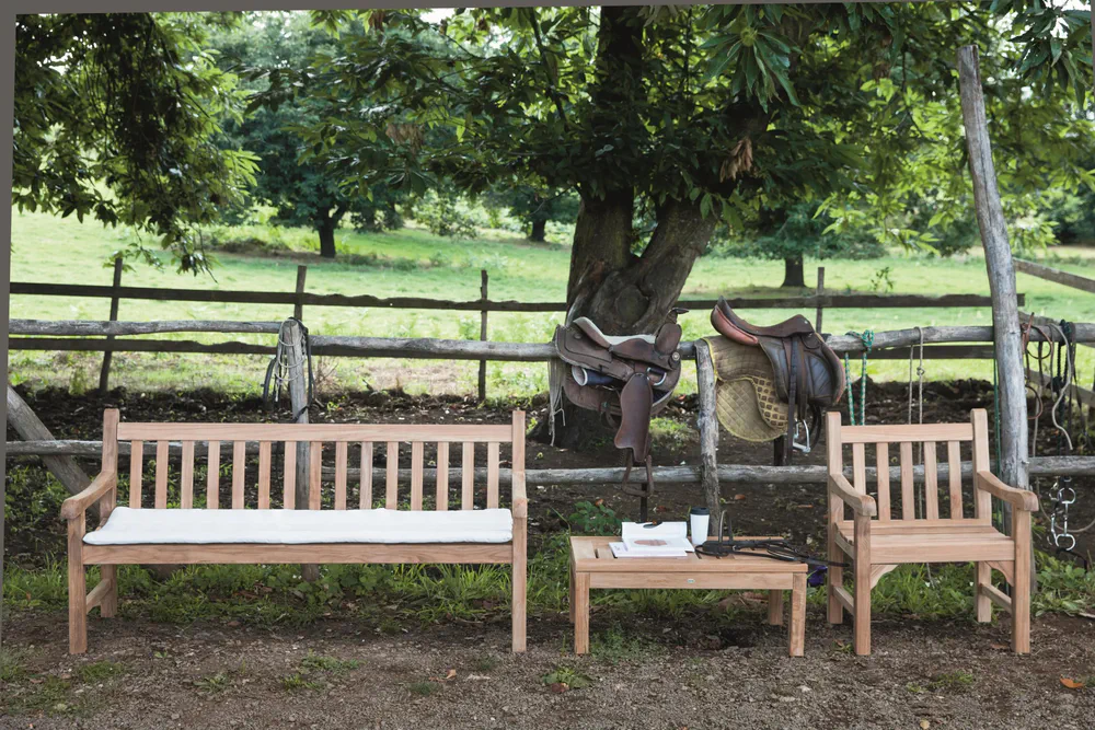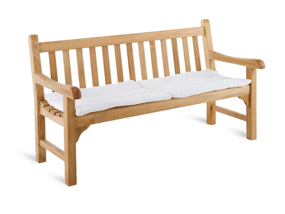 The Chelsea Teak Garden Bench is a stunning addition to any outdoor space, offering a perfect blend of comfort and style. Crafted from durable teak slats, it features classic armrests and a unique design that evokes the charm of English estates. With dimensions of 183 cm, this bench is ideal for relaxing after a long walk or enjoying a drink outdoors. Customize it with cushions from the Tempotest Color Collection to enhance its appeal. Transform your garden with this welcoming and sophisticated seating option!