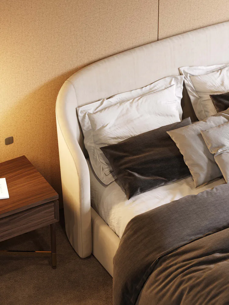 Discover the exquisite Velvet Double Bed from the Fortune collection, designed to elevate your bedroom with modern elegance. Upholstered in luxurious beige velvet, this bed not only offers stunning aesthetics but also exceptional comfort for restful nights. Its versatile design ensures it fits beautifully into various decor styles, making it a perfect choice for modern and minimalist environments. Embrace the blend of contemporary craftsmanship and authentic comfort with the Fortune bed, transforming your sleeping area into a serene retreat.