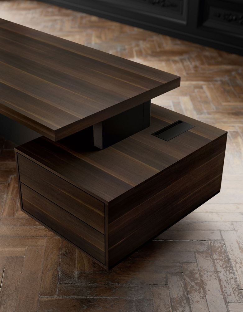 Elevate your workspace with the Imperial wooden executive desk from the Bold58 collection. Its sophisticated design combines melamine and lacquer finishes with an integrated pedestal drawer unit, creating a perfect blend of elegance and functionality. The substantial worktop invites creativity and productivity, while its glass support adds a touch of lightness. Experience a refined work environment that adapts to your needs with dynamic and stylish furniture elements. Perfect for contemporary office spaces, this desk not only enhances aesthetics but also ensures comfort, making it an ideal choice for any professional setting.