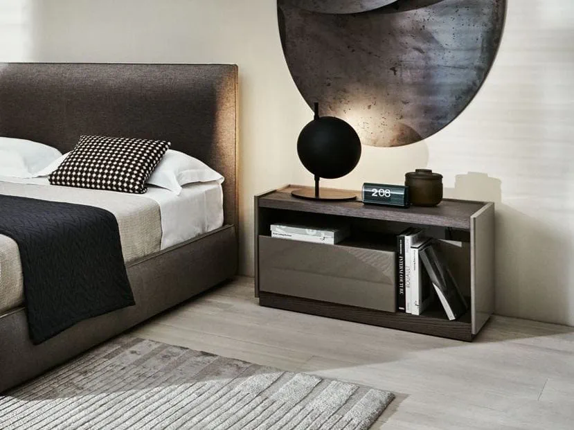 Transform your bedroom with the stunning 5050 wooden bedside table, designed by Rodolfo Dordoni. This elegant piece features a striking combination of wood and lacquered surfaces, available in various sizes to fit your space perfectly. The rounded contours and geometric design create a visual centerpiece that complements any modern decor. Enjoy the functionality of the drawers combined with the sophisticated play of colors, making the 5050 not just a bedside table, but a statement of style. Elevate your sleeping area today!