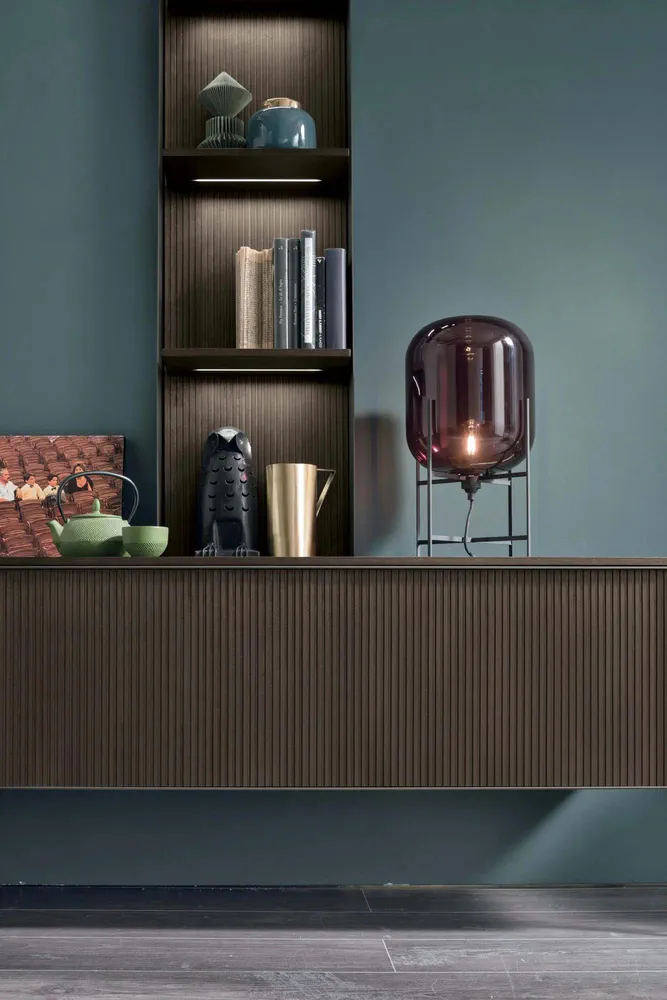 Transform your living space with the ATLANTE UNIT AT108, a sophisticated sectional storage wall crafted from reeded mocha oak wood. This stunning piece combines elegance with functionality, featuring textured finishes and a warm, inviting appeal. Its design captures the beauty of nature with raised, vertical lines and refined colors, making it the perfect addition to any contemporary room. Experience superior craftsmanship and elevate your home's aesthetic with this remarkable storage solution that provides both style and practicality.