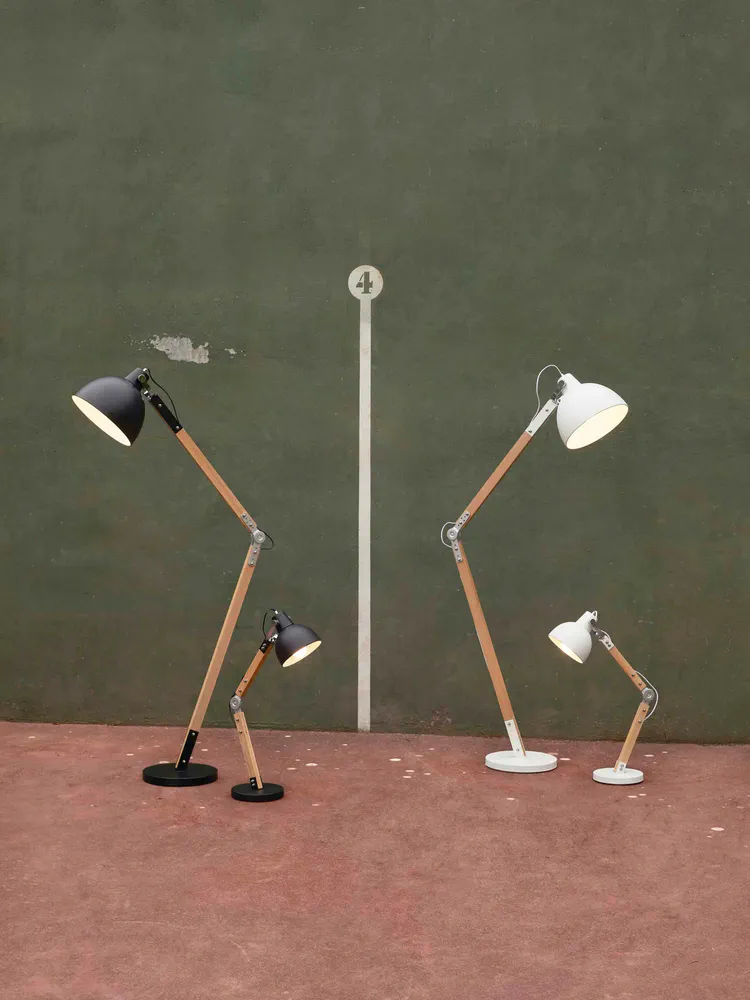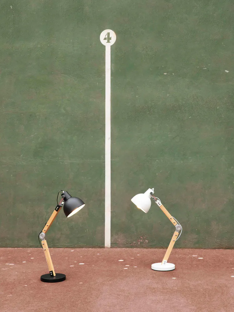 The Denver desk lamp combines striking style with functionality, featuring an adjustable body crafted from premium ash wood and sleek lacquered steel. Available in elegant black and white, this piece serves as a stylish addition to any workspace or home office. Perfectly blending contemporary design with practical use, the Denver lamp provides targeted lighting, enhancing your productivity while adding a touch of sophistication. Illuminate your environment with this unique, versatile desk lamp that fits any modern aesthetic.