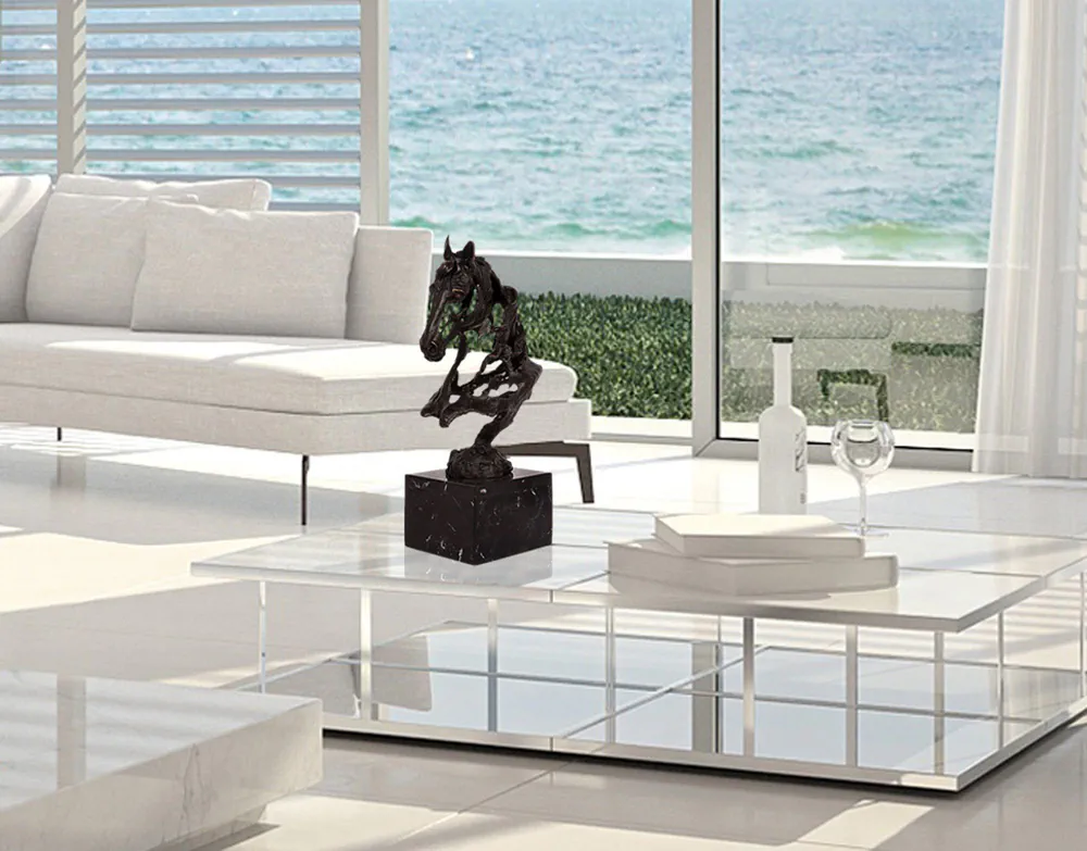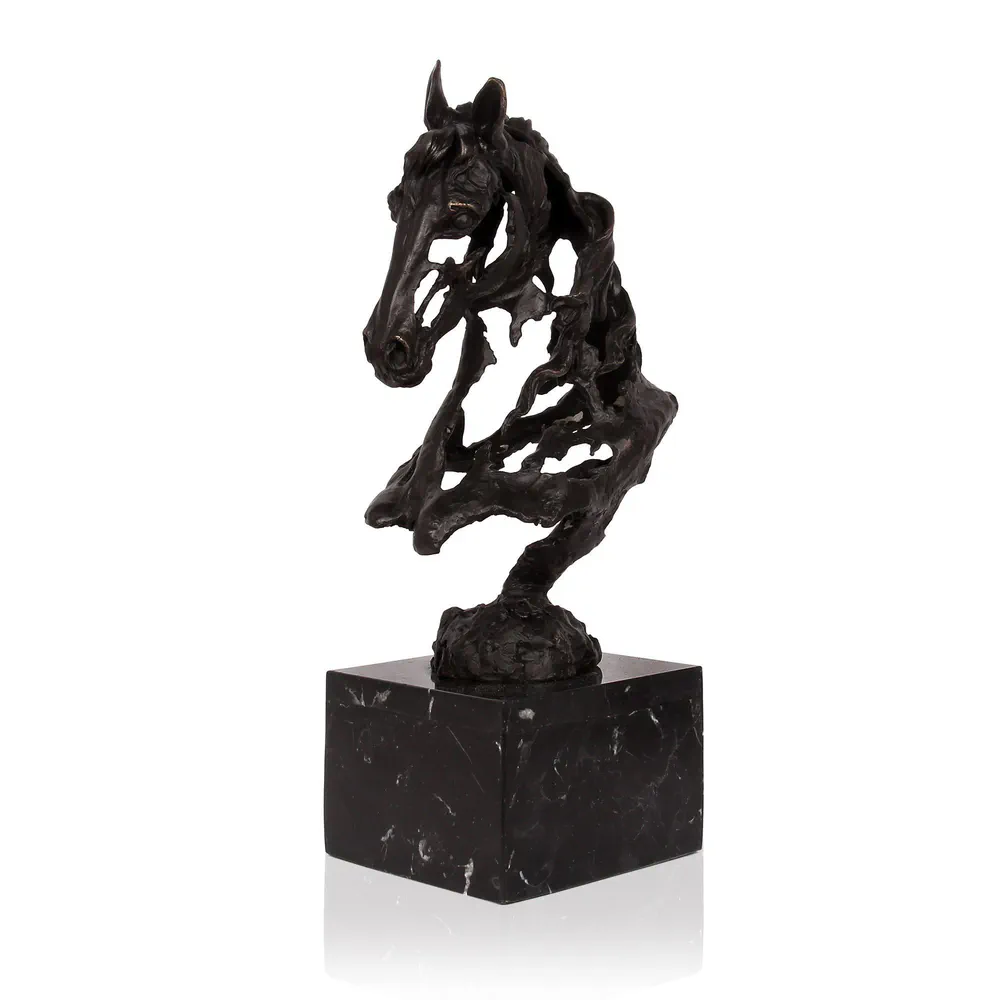 Enhance your living space with the PA041 Horse Head, a stunning modern patinated bronze sculpture with a marble base. Crafted using the ancient lost wax casting technique, this exclusive piece combines artistry and unique craftsmanship. Its versatility allows it to complement both classic and contemporary decor styles, making it a perfect centerpiece for any room. Each sculpture comes with a certificate of craftsmanship, ensuring its authenticity and value. Elevate your art collection with this remarkable sculpture that brings elegance and sophistication to your home.