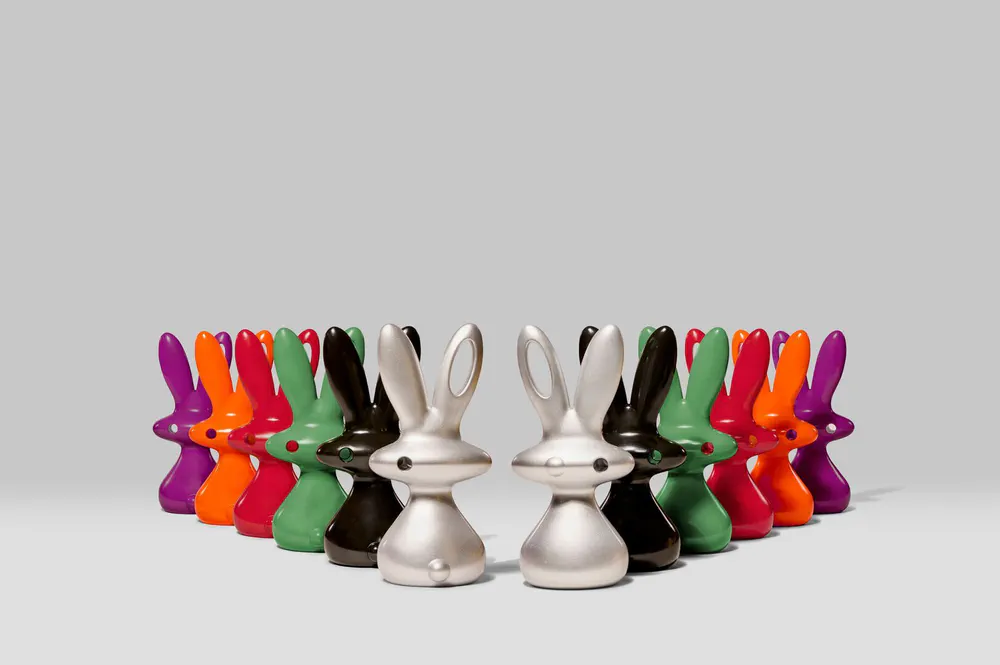 Discover the enchanting Cosmo Bunny, a striking polyethylene sculpture that combines childlike whimsy with powerful artistry. Designed by Aki Kuroda, this limited-production piece embodies creativity and nostalgia, perfect for both indoor and outdoor spaces. Available in vibrant colors and unique Stardust finishing, Cosmo Bunny transforms any setting into a playful art experience. Captivating and charismatic, it was showcased at prestigious art events, making it a must-have for art lovers and collectors. Elevate your decor with this standout design that celebrates imagination and artistic expression.