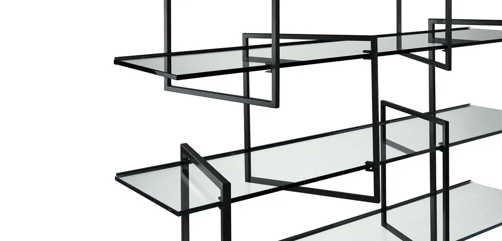 Elevate your space with the DISCRETE Open Glass and Steel Bookcase, a stunning combination of tempered glass and metallic frames. This unique asymmetrical design by Cecilia Xinyu Zhang adds a touch of ethereal elegance to any room. Perfect for displaying books and decor, it offers both style and function. The versatile lacquer finishes allow for personal customization, making it a standout piece in contemporary interiors. Invest in a statement storage solution that seamlessly blends art and furniture, ideal for residential or commercial use.