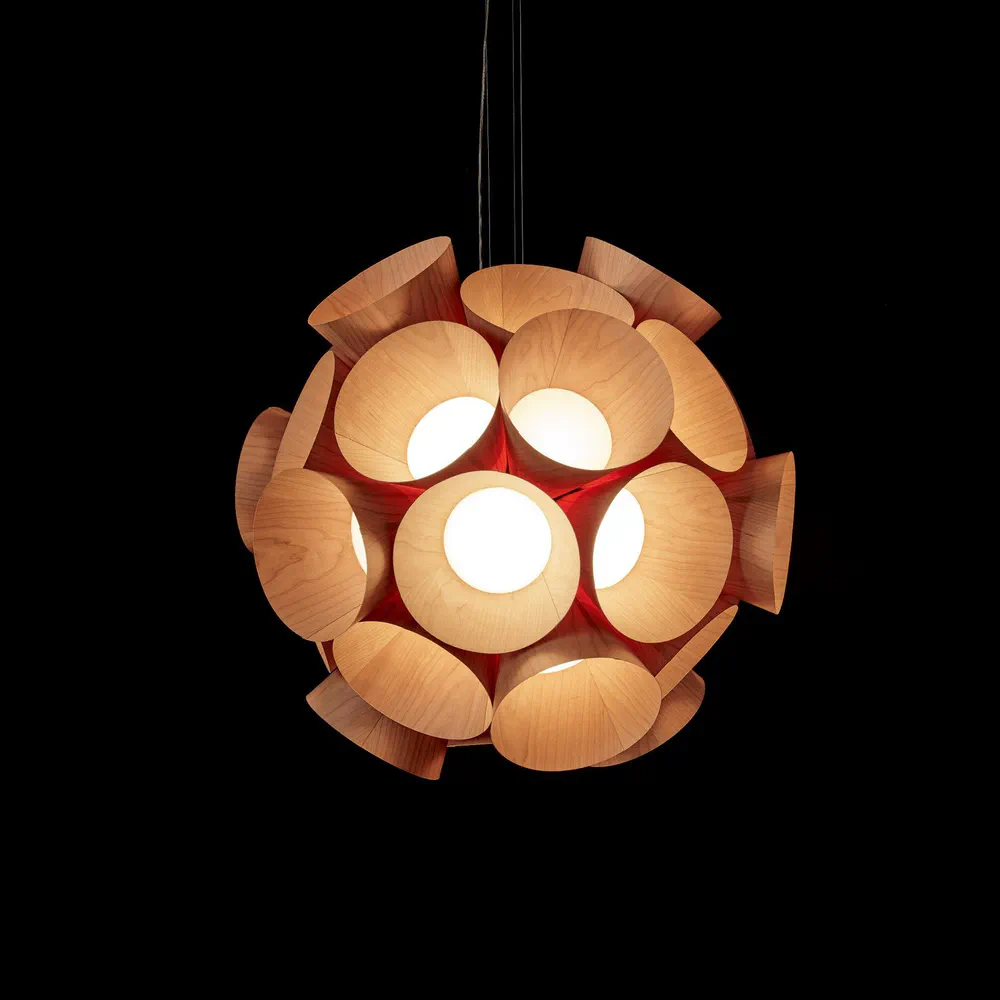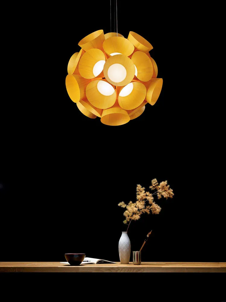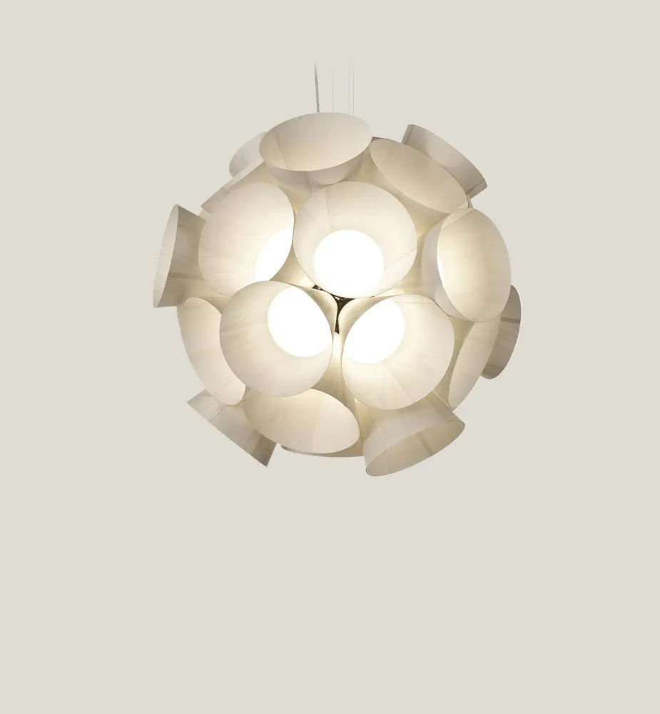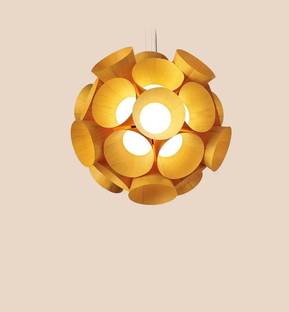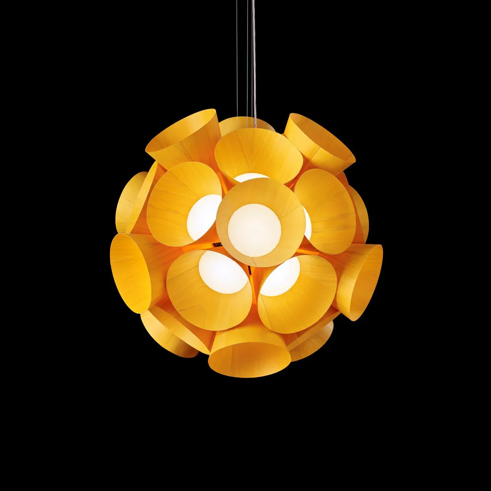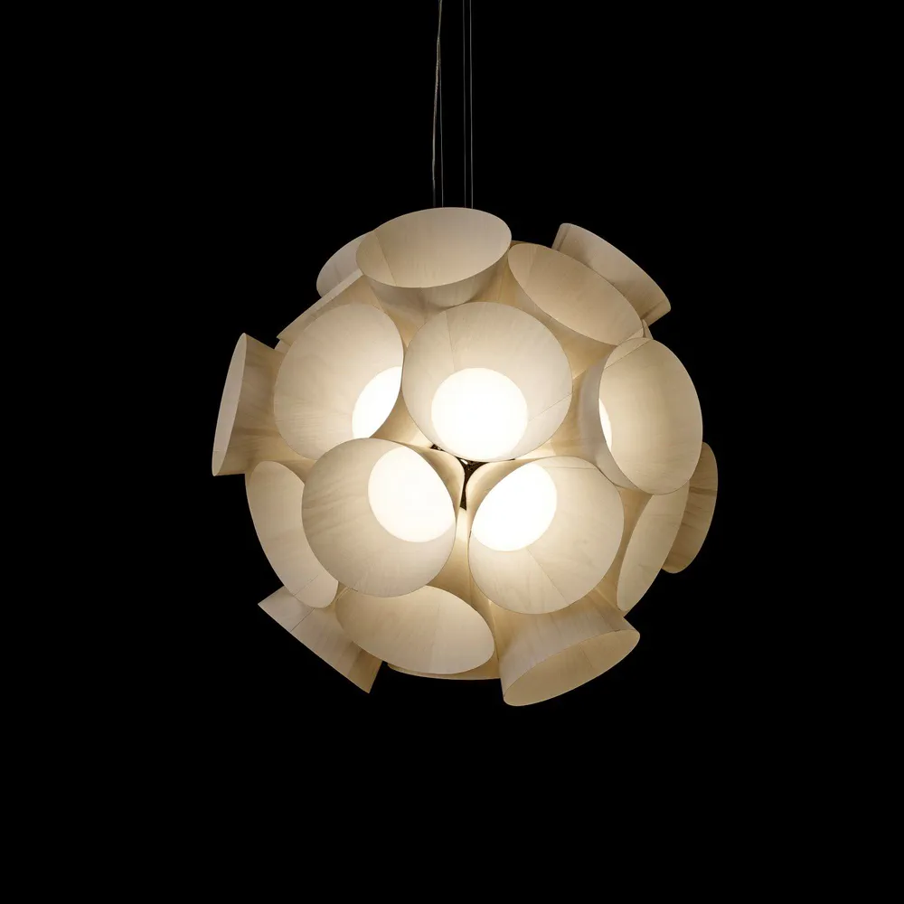 Illuminate your space with the Dandelion Handmade Pendant Lamp, a stunning blend of nature and design by Burkhard Dämmer. This exquisite lamp features a composition of independent floret shapes crafted from LZF's unique wood veneer, creating a brilliant and cohesive light that captivates any room. Awarded the prestigious German Design Award 2017, it is not just a source of light but a statement piece for your home. With dimmable LED capabilities and an elegant modern aesthetic, the Dandelion lamp transforms your interior into a vibrant sanctuary.