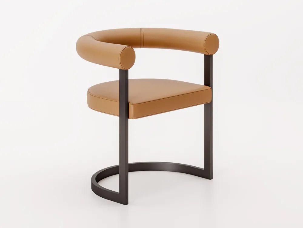 Introducing the Dharma Leather Chair, an exquisite blend of harmony and functional style. Its innovative cantilever design combines a sleek metal frame with a padded seat and backrest, creating a light and ethereal aesthetic. The intersecting semicircles of metal and upholstery not only provide comfort but also elevate the decor of any space. Ideal for residential and commercial environments, this chair is perfect for offices, waiting rooms, or modern living spaces. Experience the unique elegance and superior functionality of the Dharma chair – where design meets comfort.