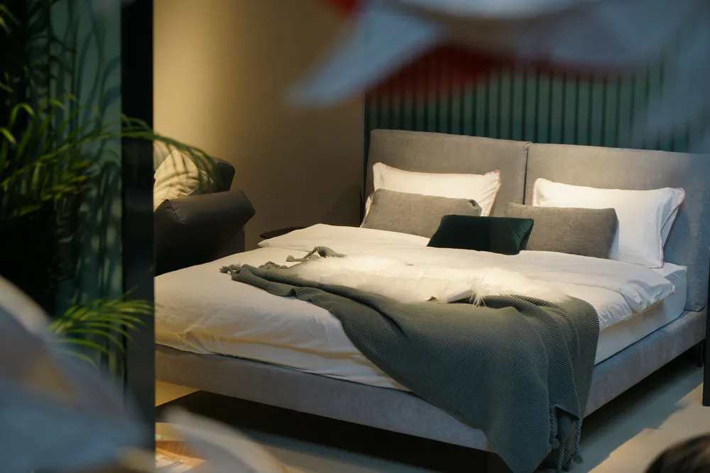 Experience luxury with the Miami Soft double bed, featuring exquisite leather upholstery and a plush headboard. This bed combines a sturdy plywood frame with soft polyurethane foam filling, ensuring both comfort and support. The headboard is adorned with nature-friendly, washed goose down for an inviting touch. With elegant semi-gloss black-stained beech feet, this bed promises a sophisticated look that enhances any bedroom. Perfect for those who value style and comfort, the Miami Soft bed is the ideal centerpiece for a contemporary sleeping space.