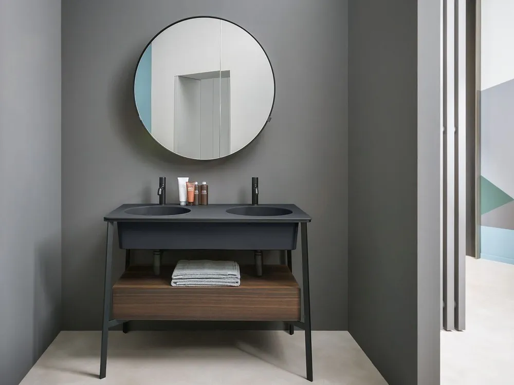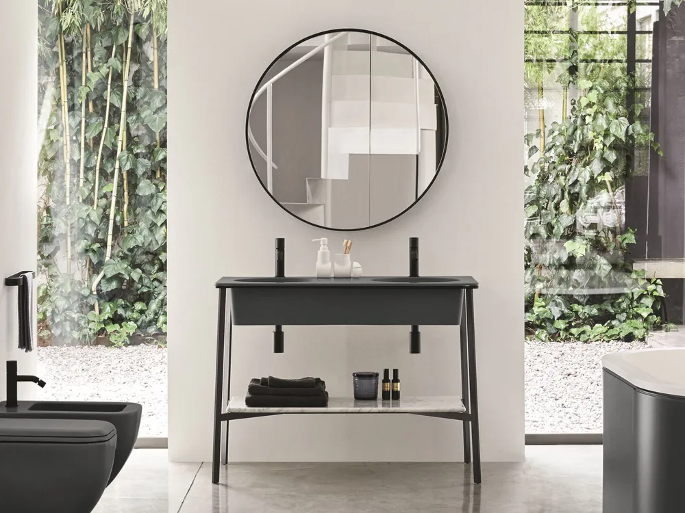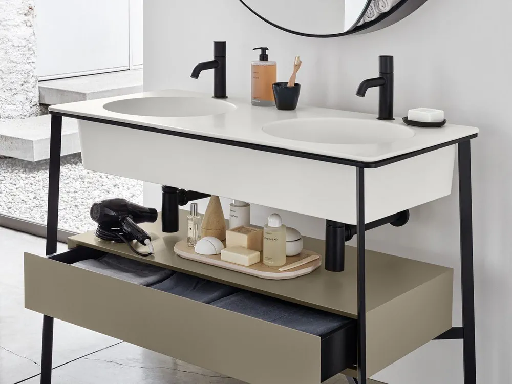 Transform your bathroom with the CATINO DOPPIO, a stunning double floor-standing vanity unit that redefines elegance. Available in multiple glossy finishes inspired by nature, it blends style with functionality, featuring customizable options for a unique look. This unit includes a convenient storage drawer, ceramic washbasins offered in 16 exquisite colors, and a selection of complementary accessories. Its harmonious design allows designers and homeowners alike to create a bathroom that reflects personal style while ensuring easy maintenance and lasting beauty. Upgrade your space today with this essential addition to your bathroom décor!