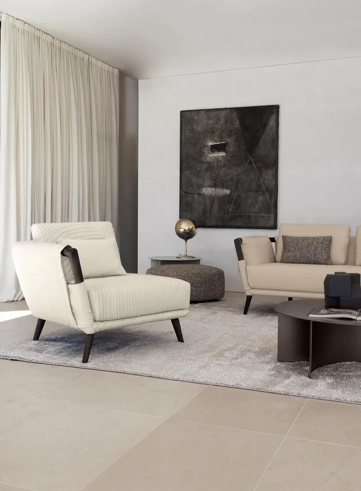 The GAUDÍ Fabric Armchair combines elegance and versatility, making it perfect for both indoor and sheltered outdoor spaces. With its soft upholstery and unique heartwood structure, it enhances any room's ambiance. The completely removable cover allows for easy maintenance, while various finishes cater to diverse decor styles. Ideal for dynamic living and conversation areas, this armchair is a standout piece that brings comfort and sophistication to your home. Experience the exceptional quality and design that sets GAUDÍ apart.