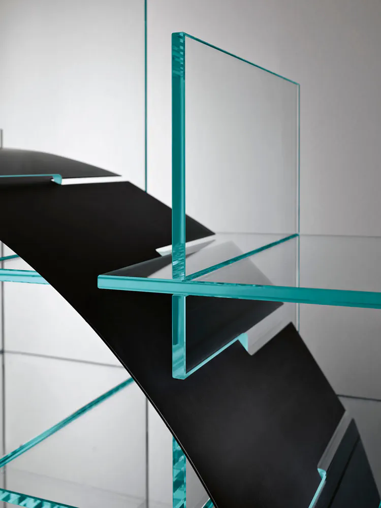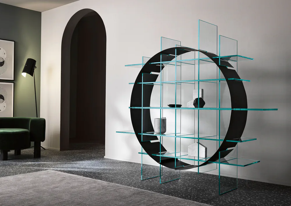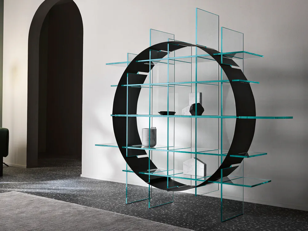 Elevate your space with the Paradigma Freestanding Double-Sided Bookcase. Featuring a stunning structure of extra clear or smoked glass, this bookcase showcases your collection while offering the unique geometric design of thin metal sheets in brushed bronze or black finishes. Its versatility allows it to fit seamlessly into contemporary interiors, serving both aesthetic and functional purposes. Ideal for displaying books or decorative items, the Paradigma brings a touch of modern elegance to any room, making it a must-have for design enthusiasts.