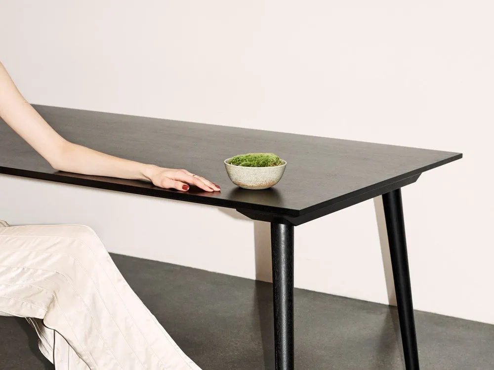 Experience the timeless elegance of the In Between SK5 Rectangular Table, expertly crafted from high-quality oak and oak veneer. Designed by Sami Kallio, this table combines traditional woodworking techniques with a modern aesthetic, making it a perfect addition to any indoor space. Its sturdy solid wood legs and unique wood block construction ensure durability and style. Available in clear, smoked, or black lacquered finishes, it fits seamlessly into both residential and commercial settings. Elevate your dining experience with this enduring piece of Scandinavian craftsmanship.
