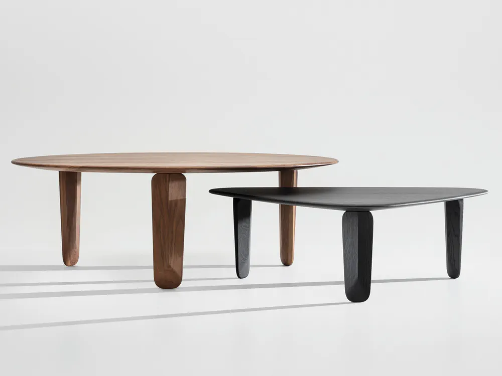 Elevate your living space with the KUYU low triangular solid wood coffee table, a stunning blend of sculptural design and functionality. Inspired by African masks, its unique geometric shapes invite creative arrangements, making it perfect for both residential and commercial settings. Crafted from solid woods such as white oiled ash and American walnut, it ensures durability while offering a warm, inviting aesthetic. With its naturally oiled and waxed finish, the KUYU table serves as both a stylish centerpiece and a conversation starter in any room.