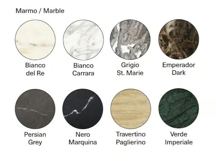 | Customization Options | eight types of marble, two types of wood |