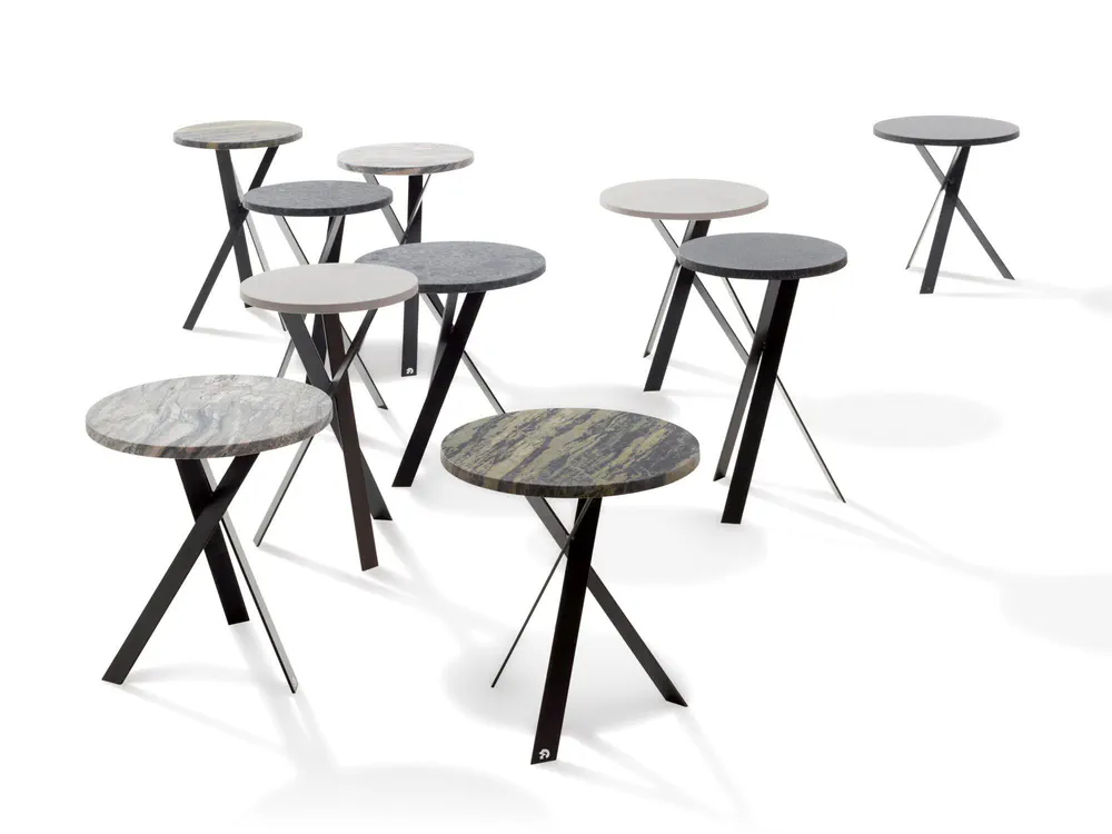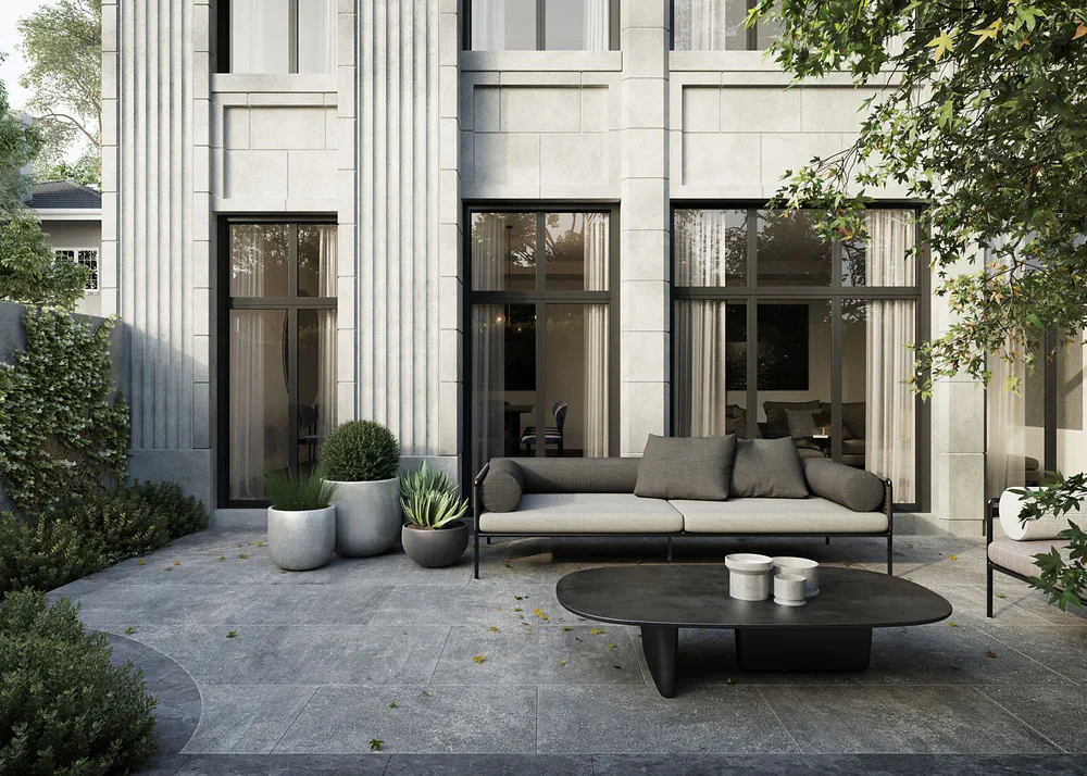 The Mortimer outdoor side table stands out with its authentic simplicity and timeless design. Crafted from natural stone with a leathered surface and raw edges, it complements a black steel pedestal that adds an industrial touch. Perfect for gardens or patios, this table uniquely combines durability with elegance, making it ideal for outdoor gatherings. Its compact size fits seamlessly in any outdoor setting, offering both style and functionality. Designed for those who appreciate modern outdoor aesthetics, the Mortimer table is a must-have for any contemporary landscape.