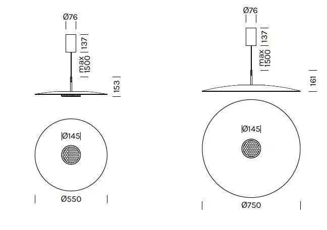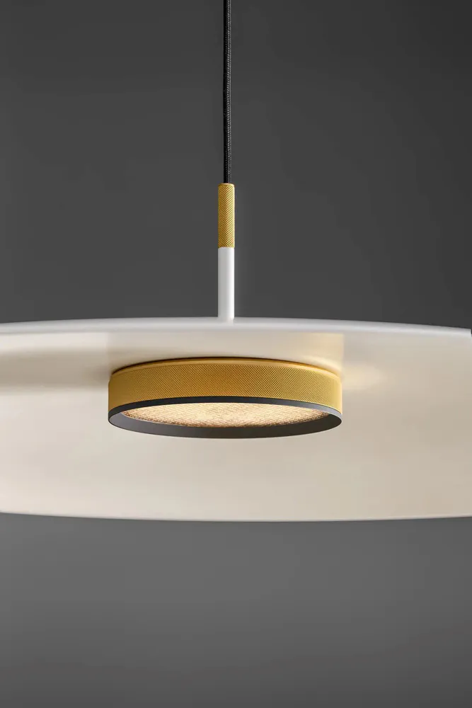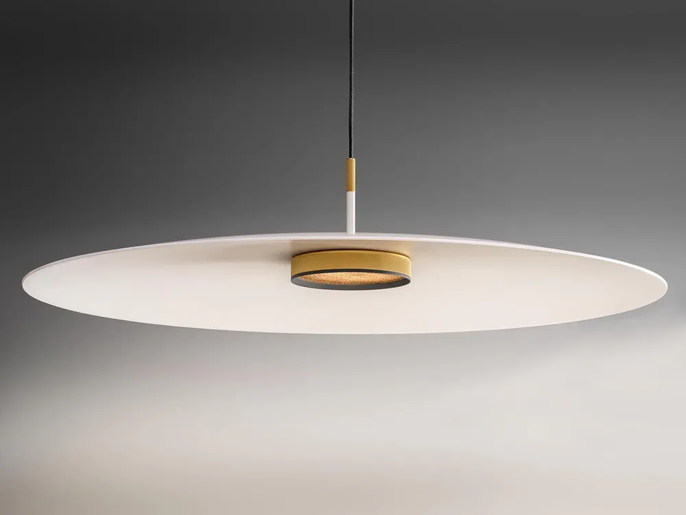The OVERFLY PLUS is a stunning pendant lamp that features an iconic UFO-like design and refined aesthetic. Made from aluminium and plexiglass, it is perfect for illuminating dining areas with its downward-projected light. The integrated honeycomb filter ensures comfort while maintaining a modern ambiance. With selectable color temperatures of 2700 K, 3000 K, and 4000 K, it can adapt to any setting. A high CRI of >90 ensures vibrant color rendering, making it a unique addition to your space.