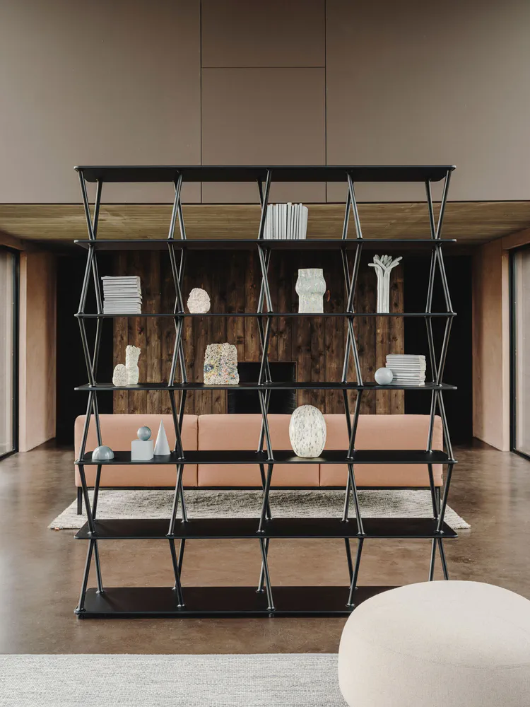 Discover the elegance of the JAZZ bookcase, a perfect blend of art and functionality. Designed by Giuseppe Bavuso, it features a unique modular structure with cylindrical elements that provide both stability and style. Made from sustainable materials, including die-cast aluminium and MDF, it supports a circular economy. Ideal for showcasing greenery, books, or decor, JAZZ can be used as a visually appealing room divider or mounted on a wall. Transform your space with this versatile and contemporary bookcase that meets varied design needs.