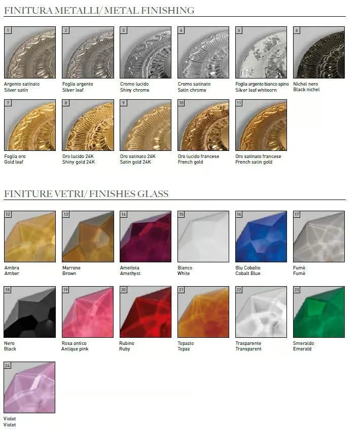 | Appearance | gold satin, silver satin, amber, violet, transparent, ruby |