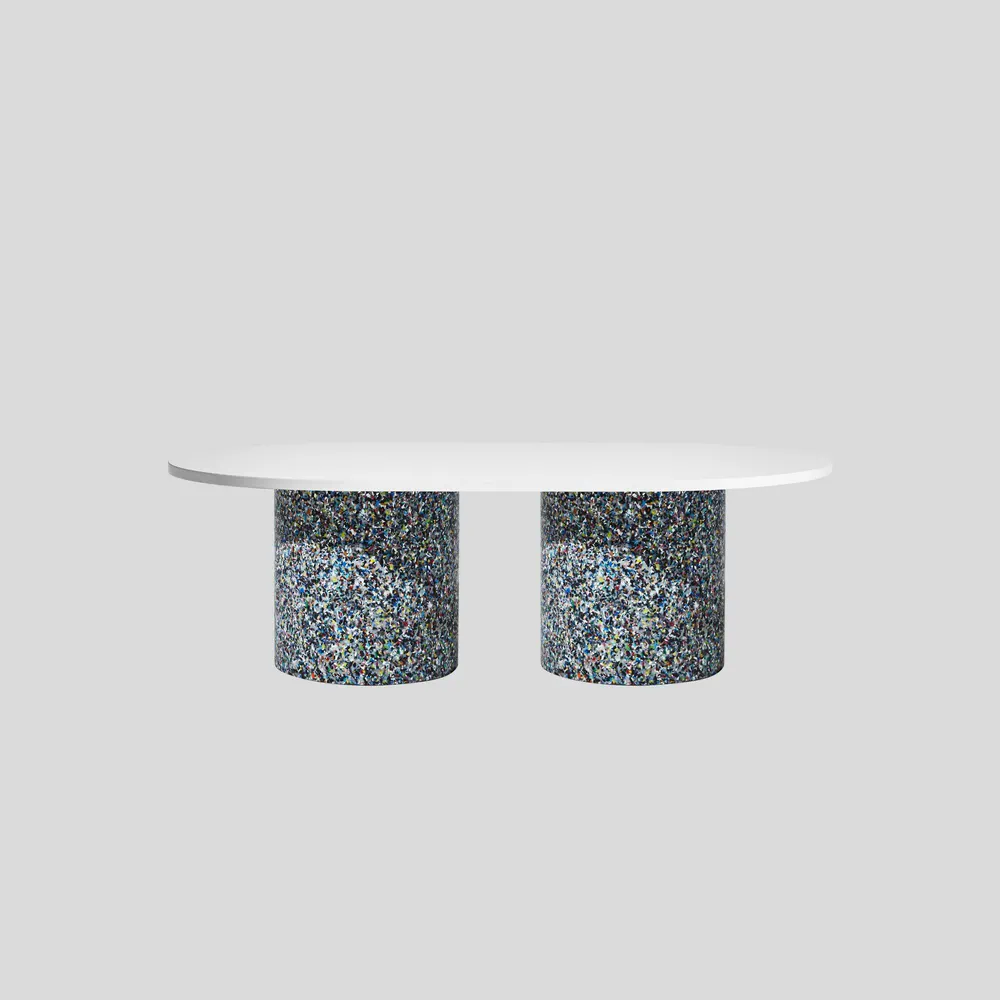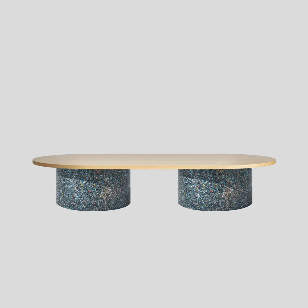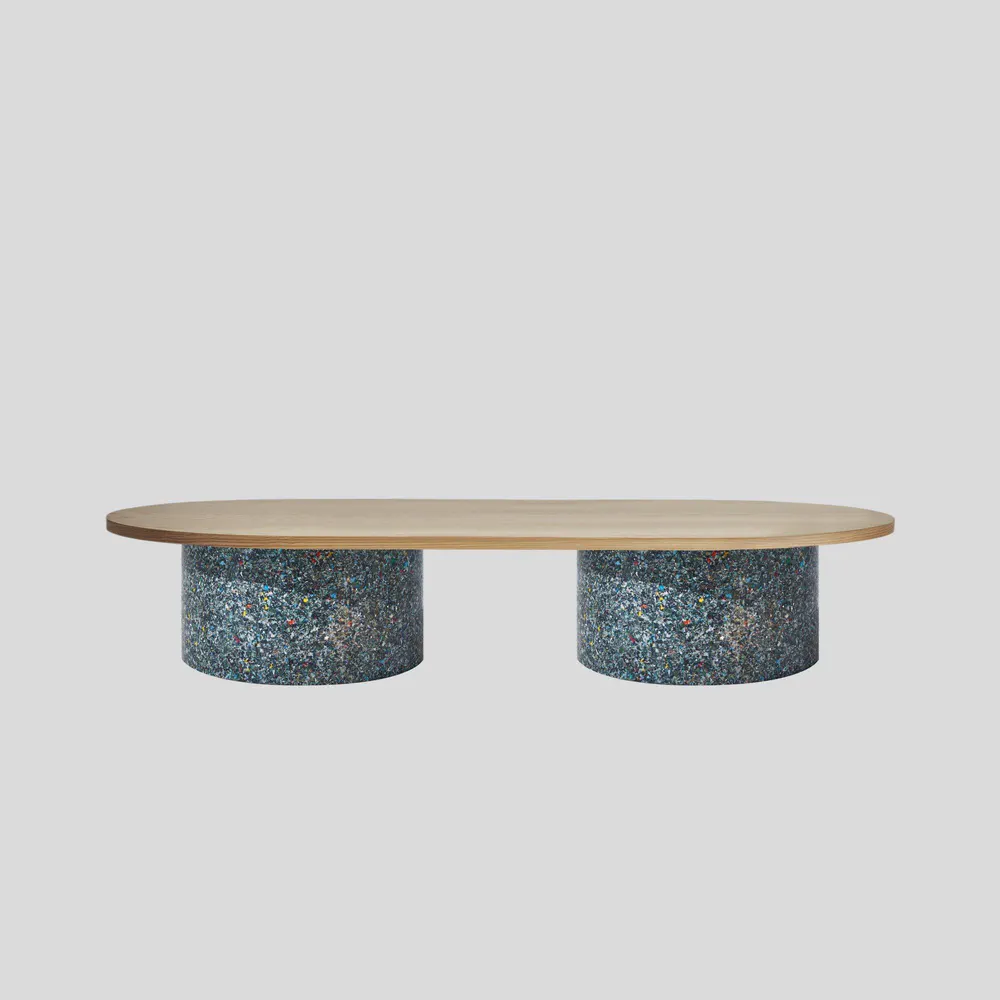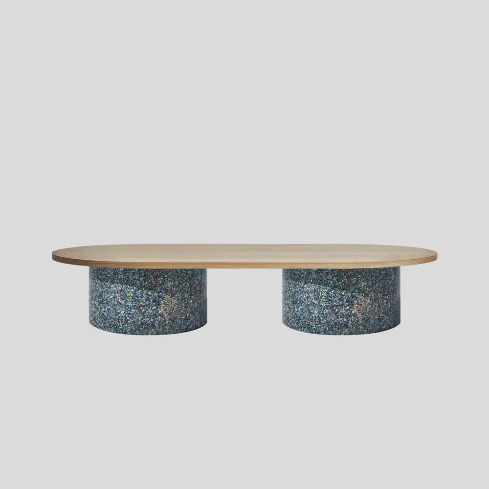 Experience the vibrant design of the Oval Confetti Coffee Table, meticulously crafted from 100% recycled plastic and featuring a powder-coated metal or laminate top. Perfect for both indoor and outdoor use, this eco-friendly table showcases unique textures and refined forms. Celebrate sustainability with a piece that is not only stylish but also tells a story—each table is distinct with no two alike. Customization options are available, making it ideal for commercial or residential spaces. Enhance your living area or patio with this one-of-a-kind addition that combines beauty and functionality.