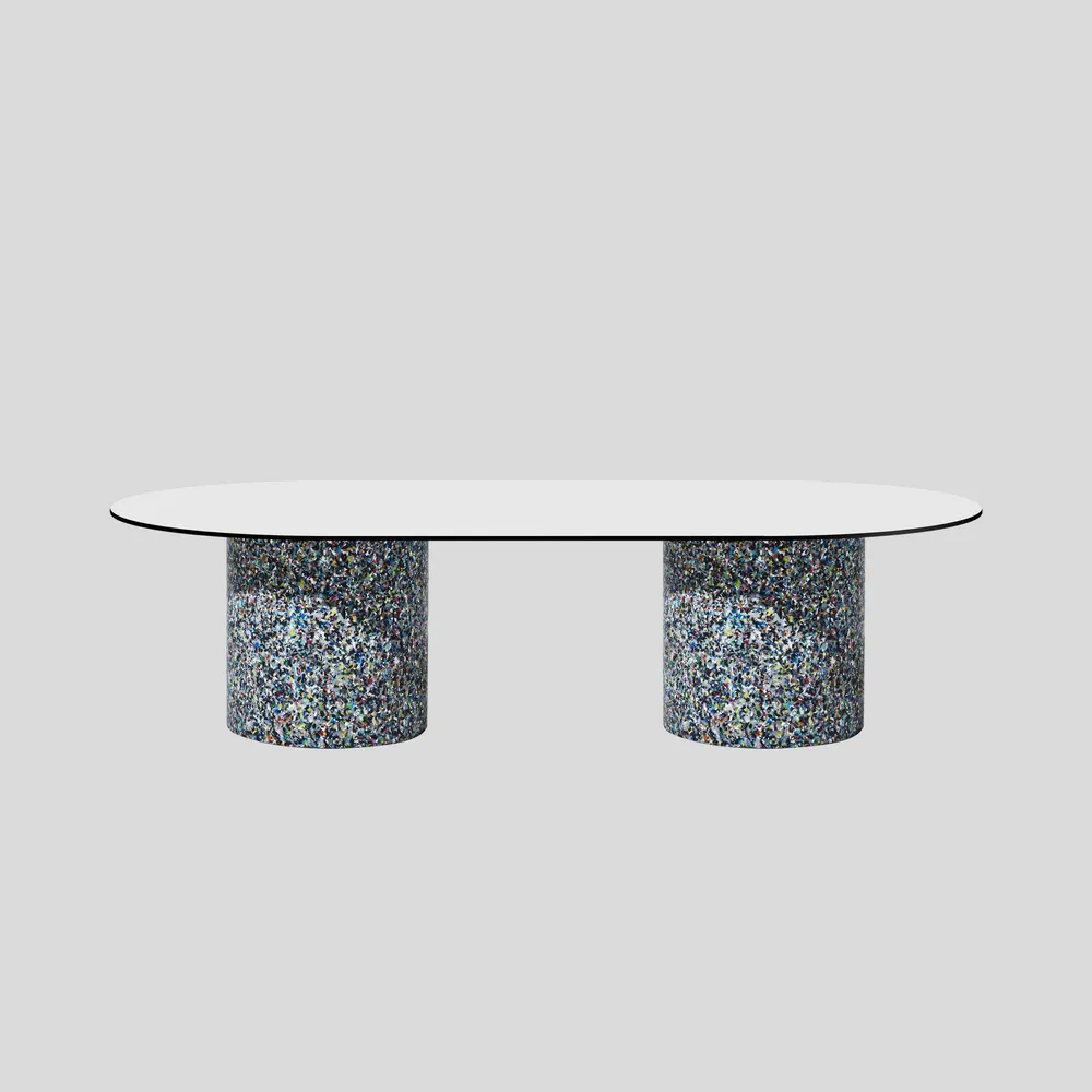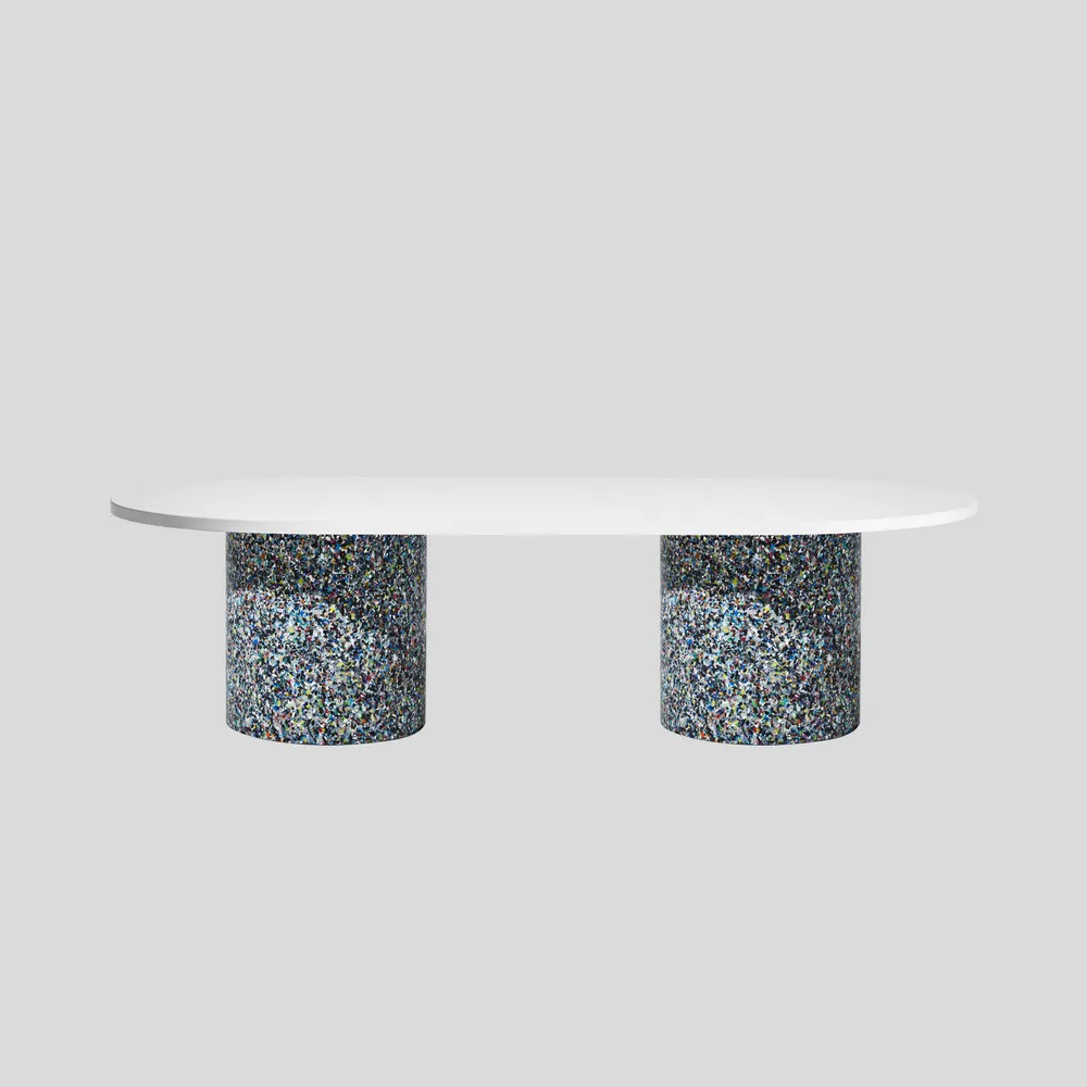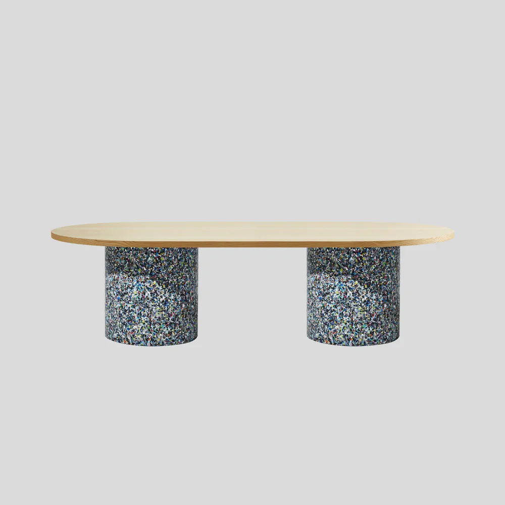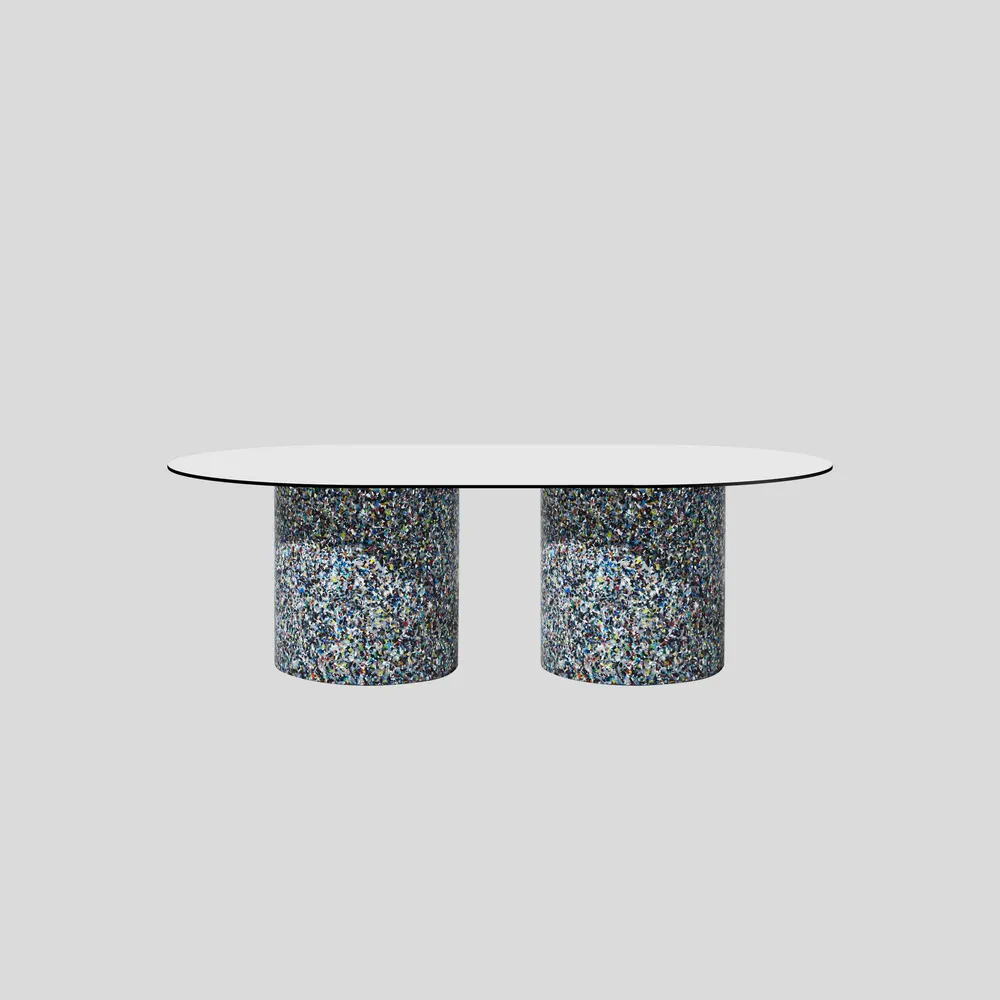 Experience the vibrant design of the Oval Confetti Coffee Table, meticulously crafted from 100% recycled plastic and featuring a powder-coated metal or laminate top. Perfect for both indoor and outdoor use, this eco-friendly table showcases unique textures and refined forms. Celebrate sustainability with a piece that is not only stylish but also tells a story—each table is distinct with no two alike. Customization options are available, making it ideal for commercial or residential spaces. Enhance your living area or patio with this one-of-a-kind addition that combines beauty and functionality.