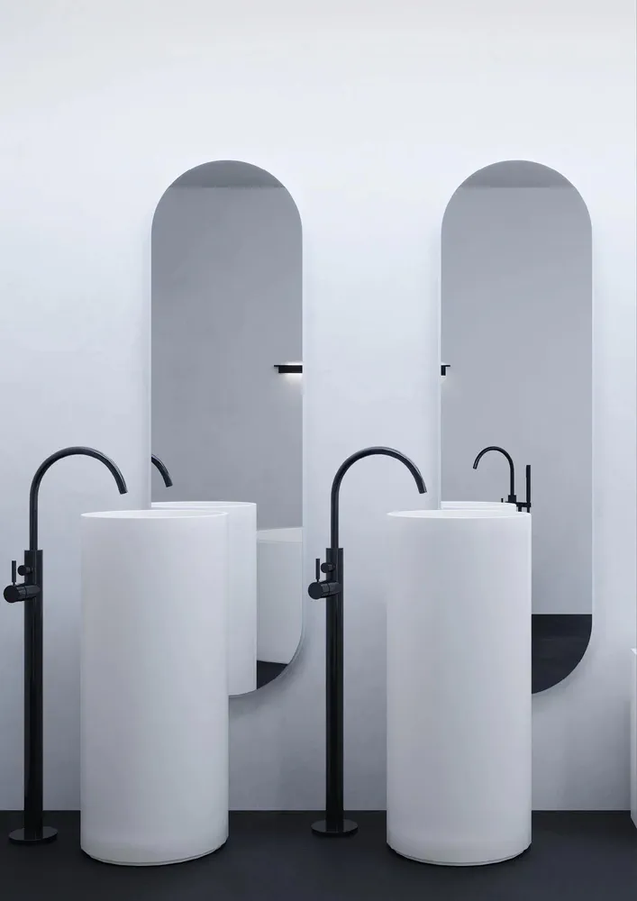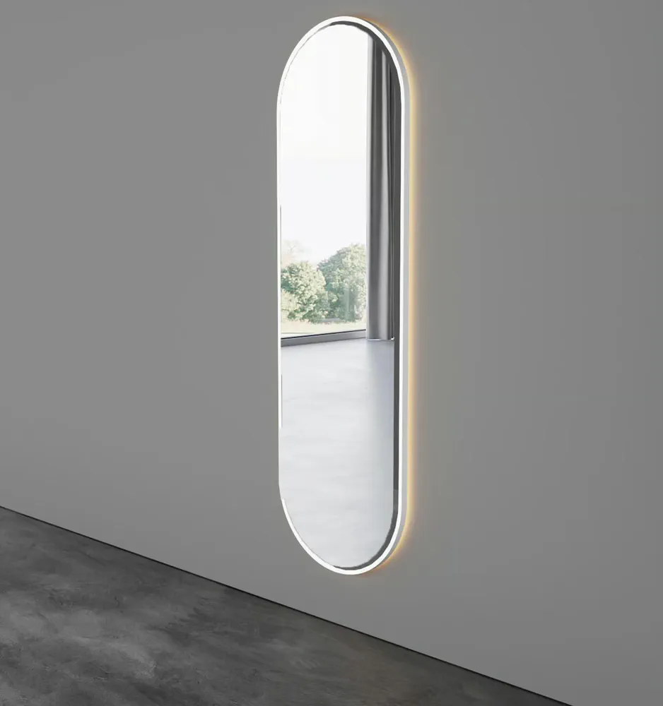 Elevate your bathroom decor with the OVOID Oval Wall-Mounted Mirror, featuring a polished edge and a unique Corian® Solid Surface curved frame. This stylish mirror not only enhances design but also offers optional LED integration for modern lighting solutions. Its sleek contemporary style is perfect for any bathroom, providing both functionality and aesthetic appeal. Experience the perfect blend of form and function with the OVOID, designed to transform your space into a captivating retreat.