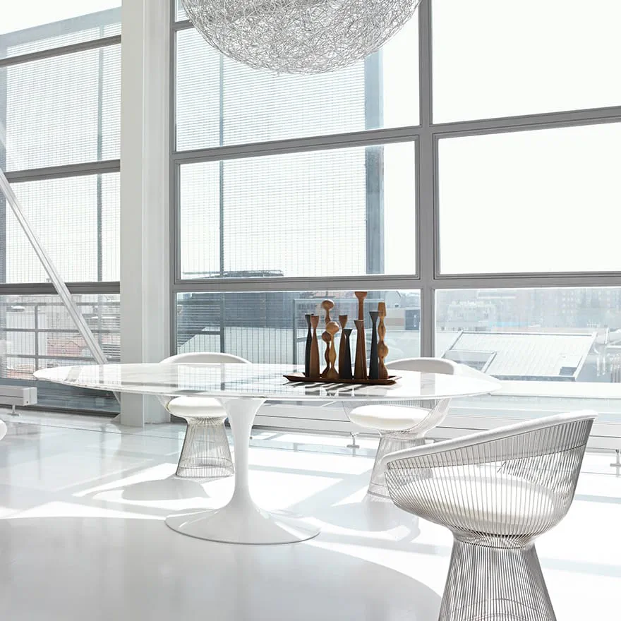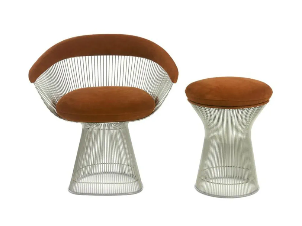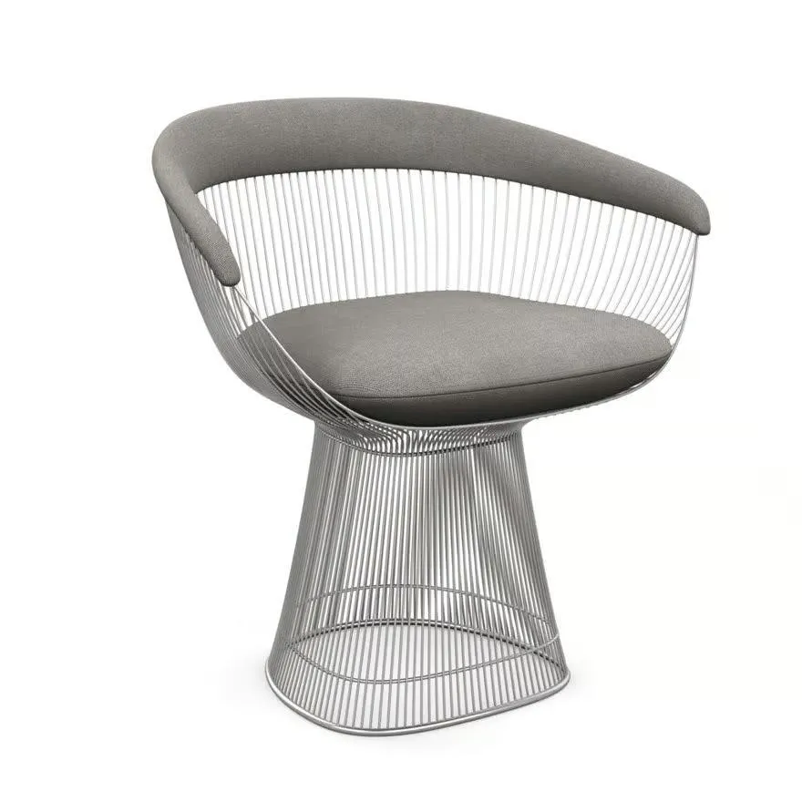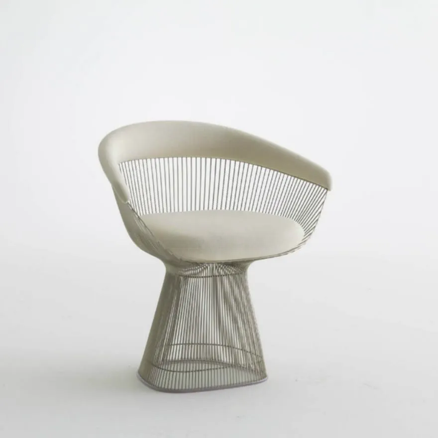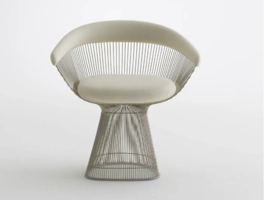 Experience timeless elegance with the Platner Steel Chair featuring armrests. Its iconic design combines hundreds of curved steel rods, creating both structure and style. Perfect for modern spaces, this chair is not only visually striking but also offers a comfortable molded fiberglass shell with foam cushioning. The variety of fabric and leather finishes allows you to personalize your seating, complementing any decor. Whether for a waiting room or an upscale office, the Platner chair stands as an award-winning piece, promising luxury and sophistication in every detail.