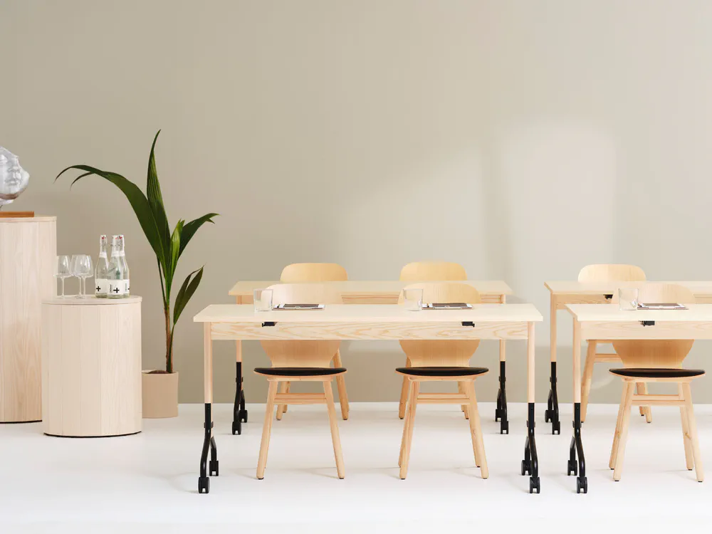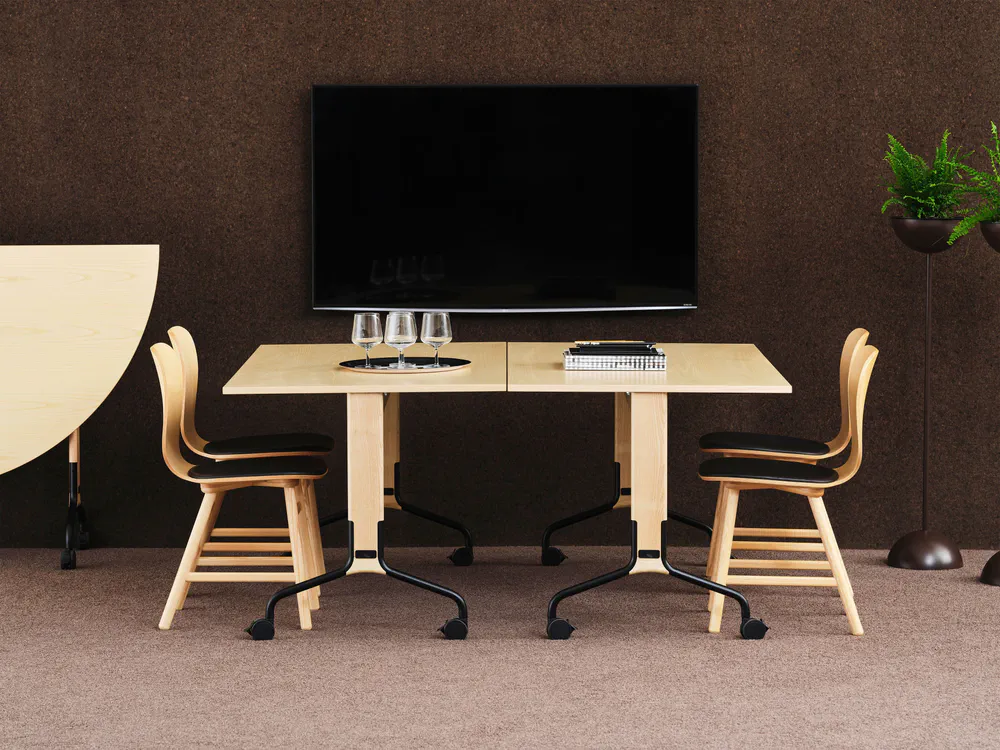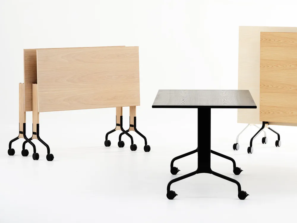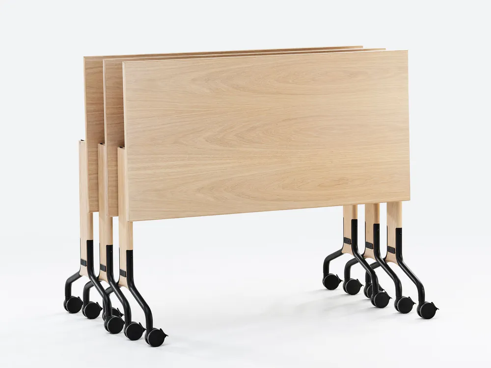 Meet ROLLO, a versatile rectangular wood veneer table designed for easy mobility and flexible use in public spaces. Built to last, this sturdy folding table combines aesthetic elegance with functional design, making it ideal for meetings or gatherings. With its user-friendly features, including a spring-loaded construction for easy setup and foldability, ROLLO guarantees stability and comfort. Choose from beautiful oak, ash, or birch finishes to enhance your environment. Perfect for modern offices and meeting rooms, ROLLO tables are smartly designed to accommodate your needs while maintaining style.