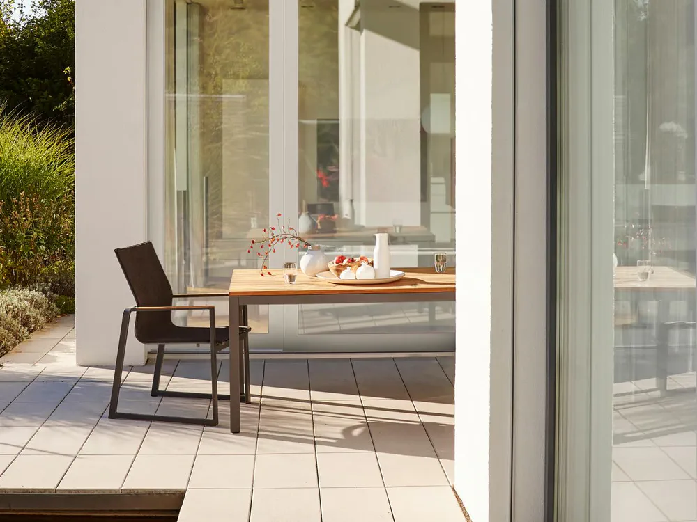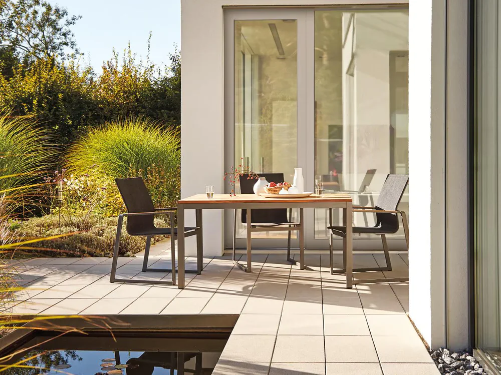 Discover the timeless elegance of the CLASSIC Alu rectangular teak garden table, designed by the solpuri design studio. Crafted with a durable aluminium frame and available in various sizes, including fixed and extendable options, this table seamlessly blends aesthetics with functionality. Its high-quality tabletop choices, including ceramic and HPL, offer unmatched visual appeal, making it perfect for both casual and formal outdoor dining. Elevate your outdoor space with this enduring piece that promises both style and longevity.