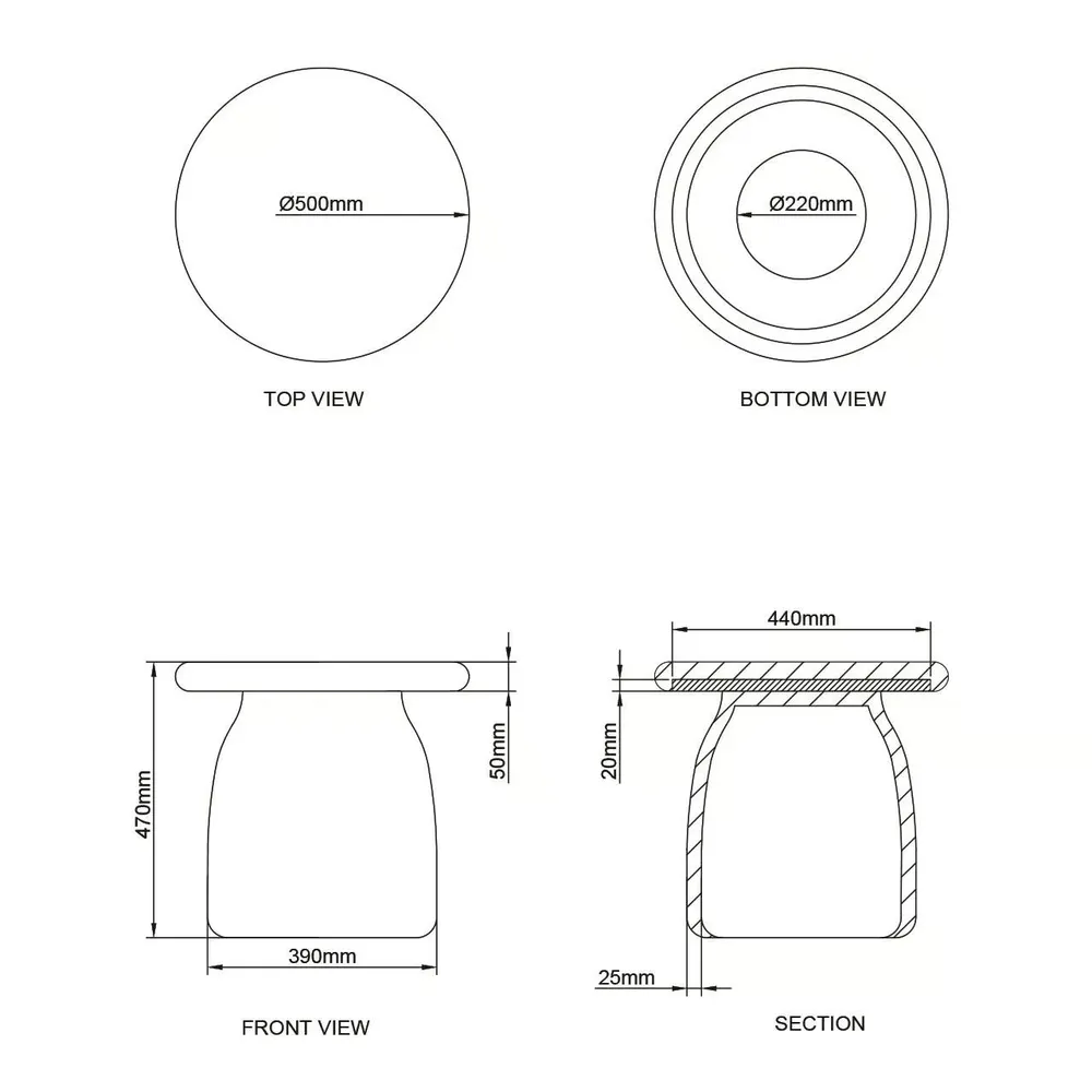 | Dimensions | diameter: 50 cm, height: 47 cm |