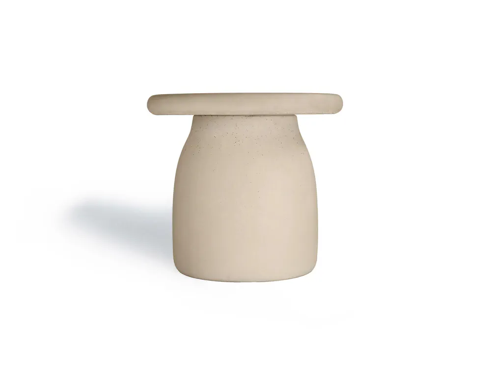 Introducing the SunDtan round concrete coffee table, a stylish and durable addition to any outdoor space. Designed by Urbi et Orbi, this table is perfect for poolside or beach settings, crafted from weather-resistant concrete. Its unique curved design is a result of a playful design process, making it a standout piece. Available in various shades of grey and additional colors such as terracotta and dusty blue, the SunDtan seamlessly enhances its environment, offering both functionality and an organic aesthetic. Elevate your outdoor experience with this versatile and chic side table, perfect for sunny days.