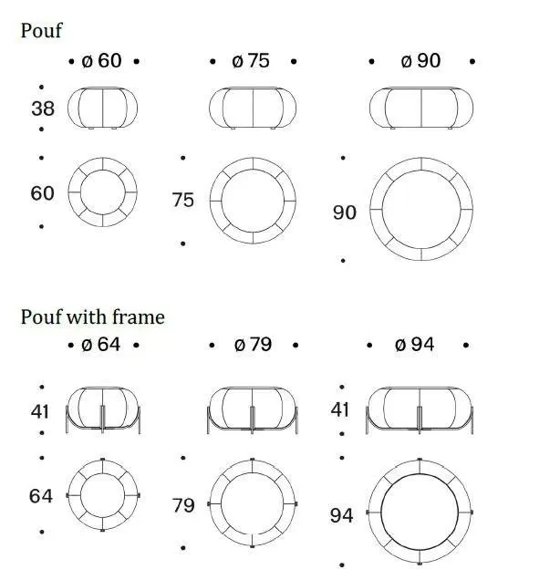 | Dimensions | 60 cm, 75 cm, 90 cm in ø, h 38cm, 64 cm, 79 cm, 94 cm in ø, h 41cm |