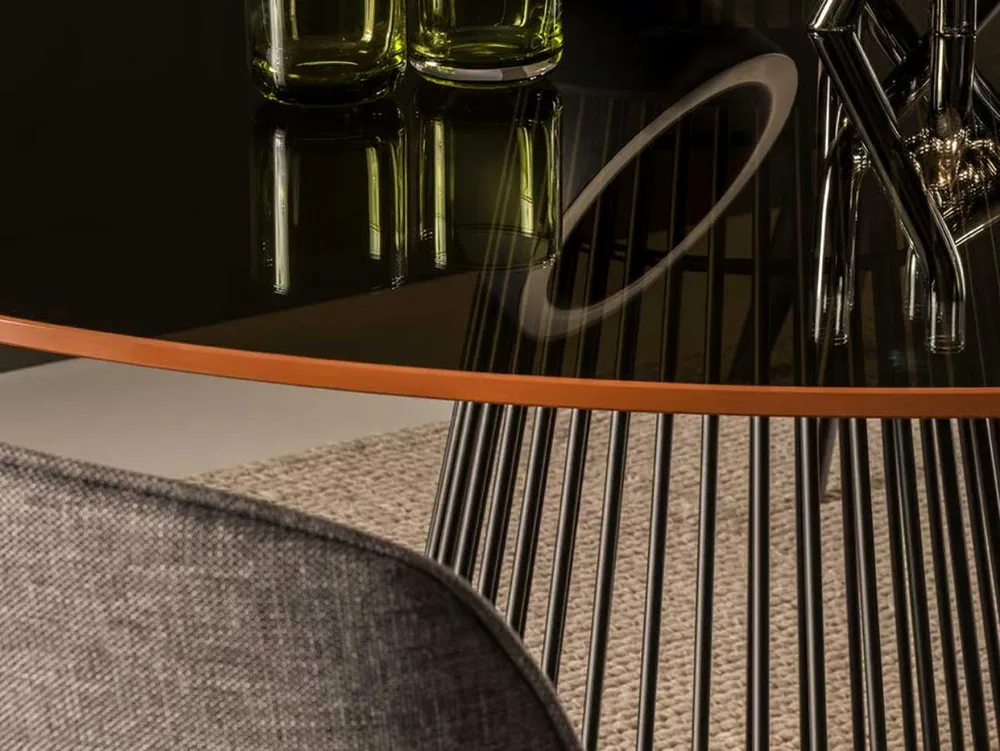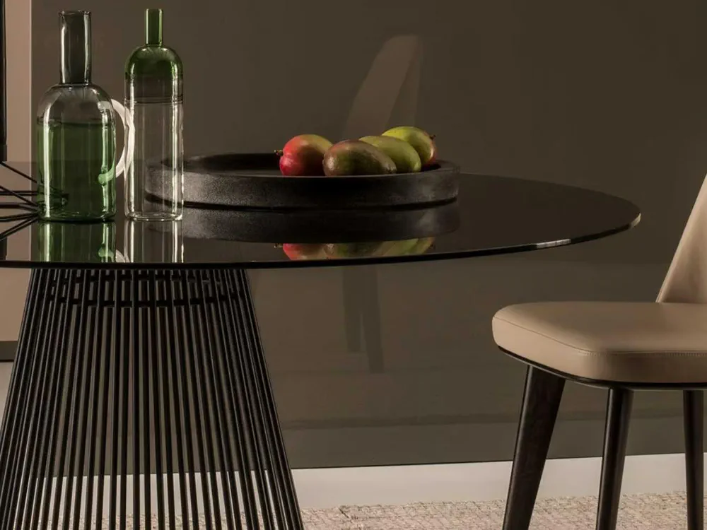 Enhance your dining experience with the CARLINO round glass dining table, designed by Mauro Lipparini. Its stunning painted metal base pairs perfectly with a variety of elegant tabletop options, from smoked glass to luxurious marble. This versatile piece effortlessly combines contemporary and timeless styles, making it a perfect fit for any dining room. With the ability to personalize your table’s look, the CARLINO adds a touch of warmth and sophistication to your home. Discover the art of dining with this exquisite table from the ITALIA collection.