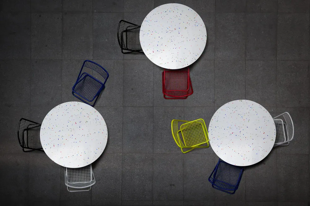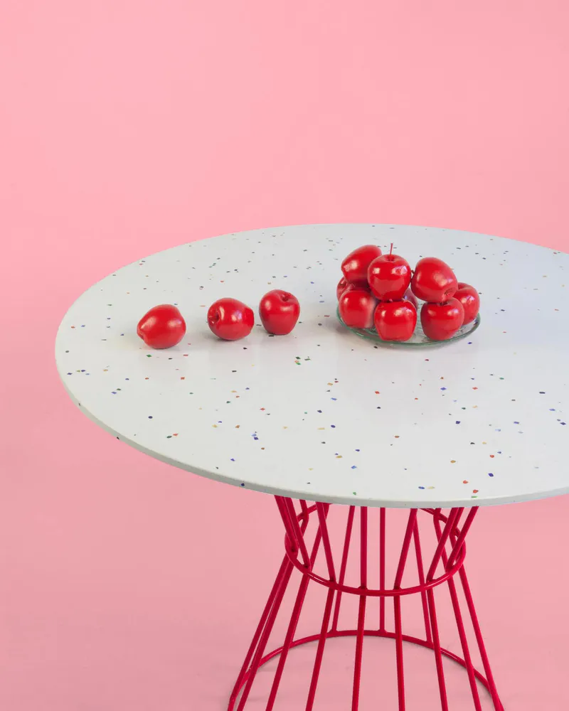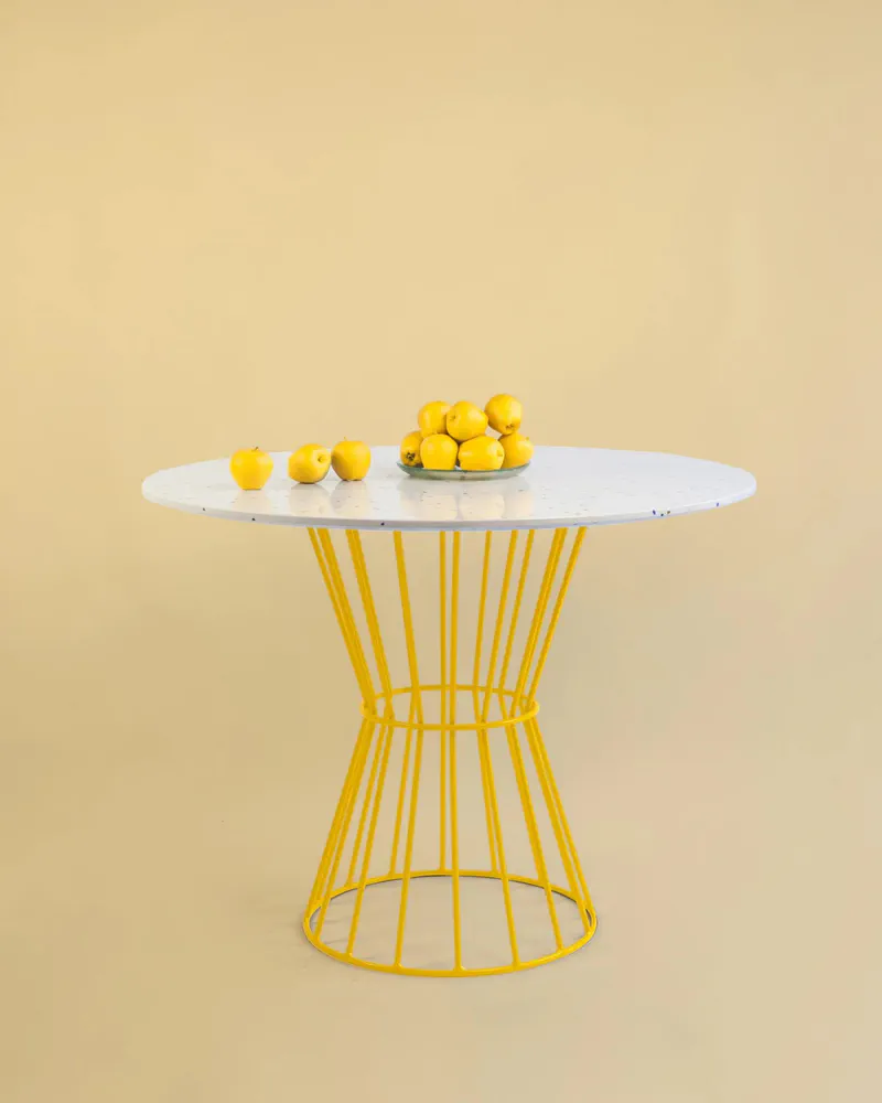 Elevate your dining experience with the Confetti Round Silestone® dining table from Houtique. This stunning table features a vibrant terrazzo effect and a robust metallic structure painted with durable epoxy. Its unique design combines bright colors and playful elements, perfect for lively gatherings and memorable Friday nights. Well-crafted in Spain, the Confetti table makes a statement in any contemporary dining space. Enjoy the blend of personality and quality that this table brings to your home.