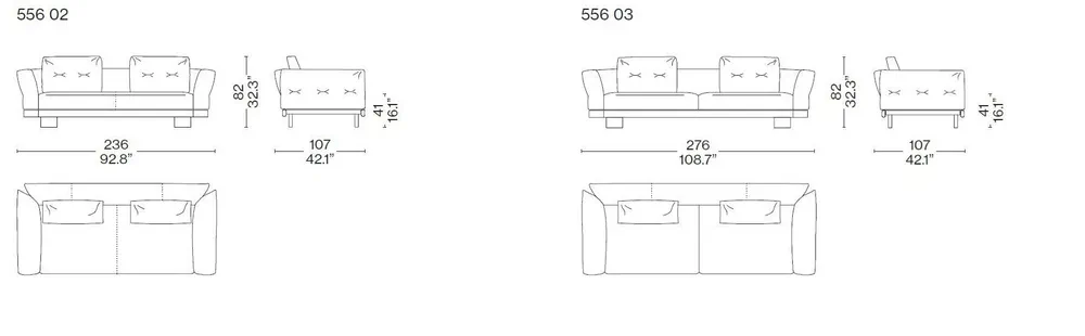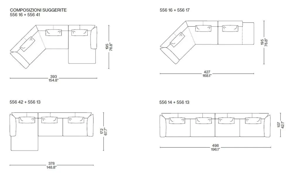 | Dimensions | two-seater: 230-270x105xh82 cm, end elements: 205-245-160x105xh82 cm, curved: 270x105xh82cm (single 100x105xh82cm), corner elements: 205x105xh82cm, middle elements: 180x105xh82cm, curved: 245x105xh82cm (single 100x105xh82cm), chaise-longue: 125x170xh82cm |