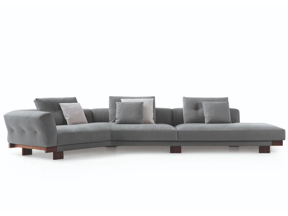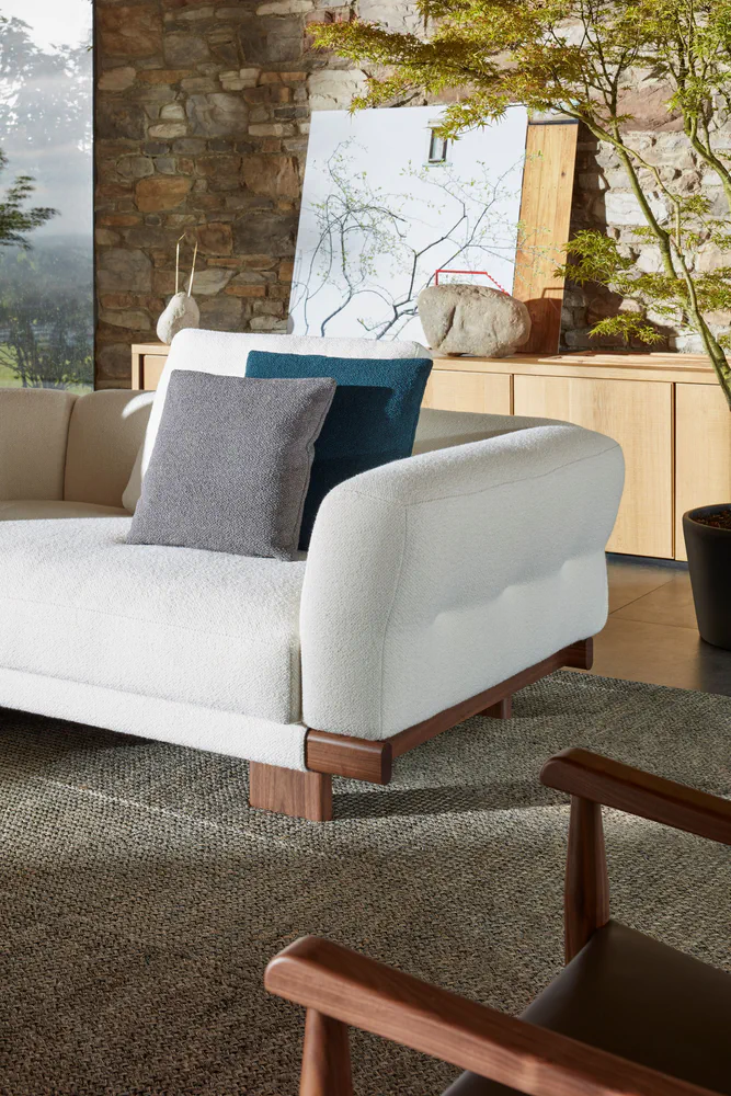 Experience ultimate comfort with the SENGU Modular Sectional Sofa, designed for contemporary living spaces. With its generous volumes and delicate design, it features ergonomic backrests and armrests, ensuring a cozy atmosphere. This innovative sofa is made from natural materials, incorporating recycled fiber padding for eco-friendliness. Its versatile arrangements and available ottoman options make it a perfect centerpiece for any living room setting. Upgrade your home decor with this stylish and valuable addition that beautifully blends modern aesthetics with functionality.