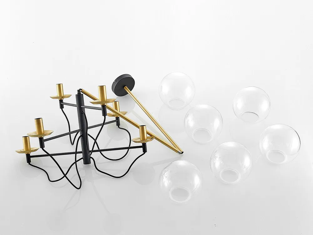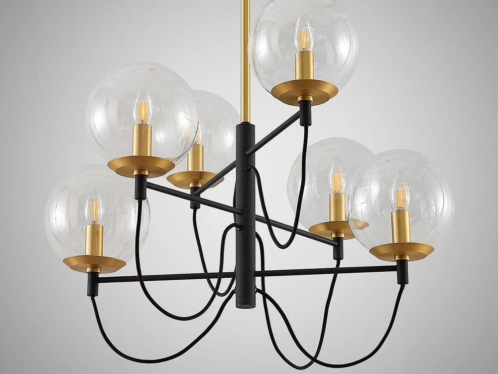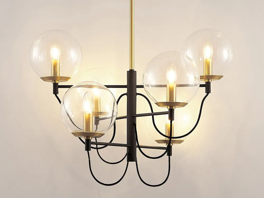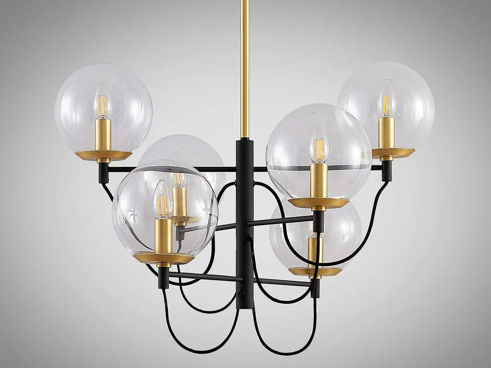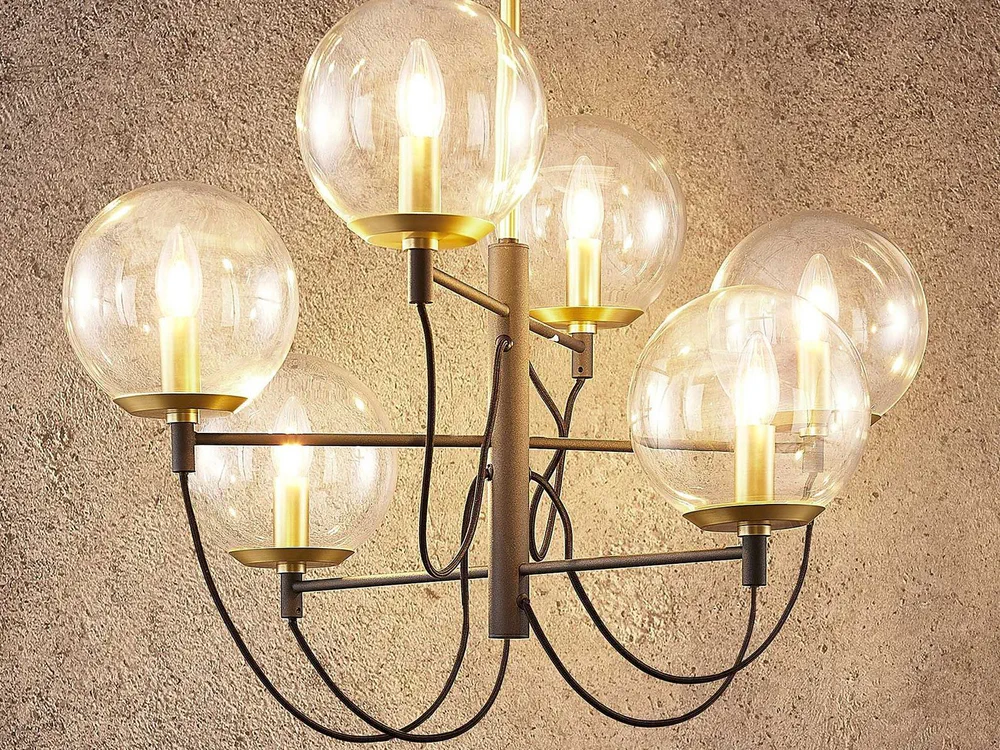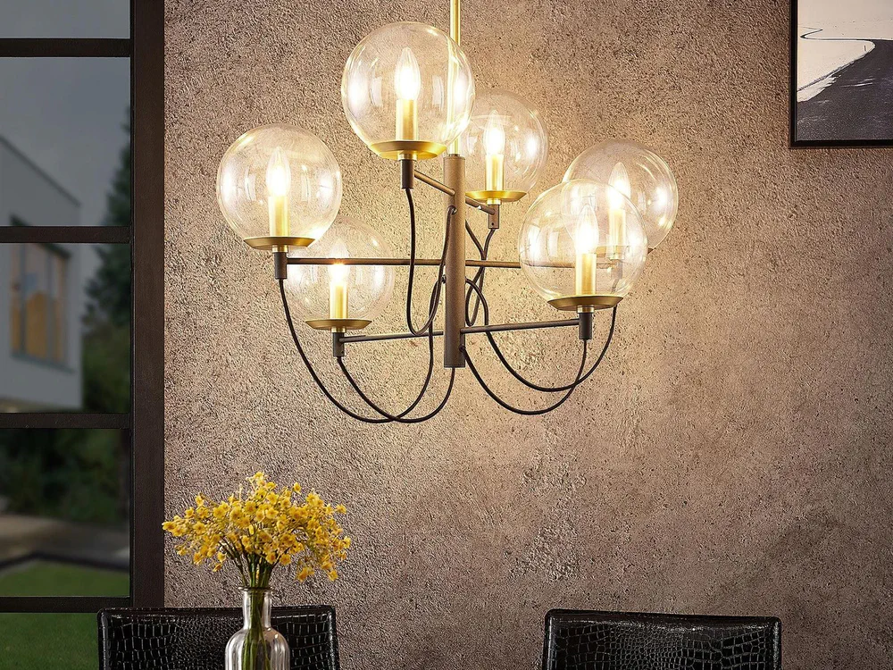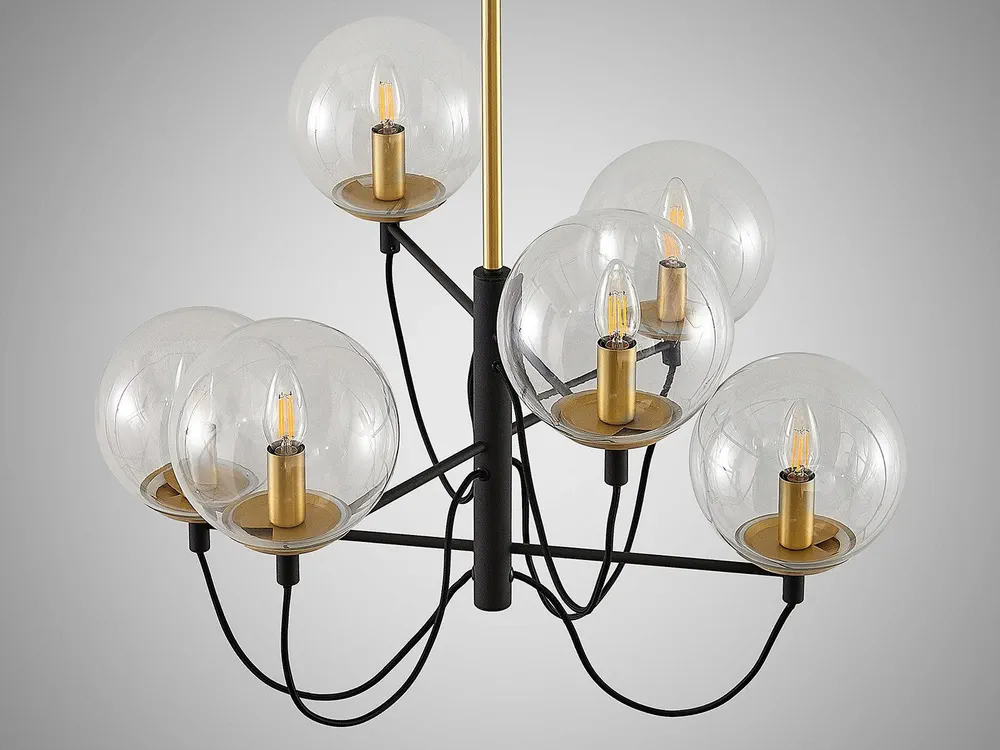 The SOTIANA 6 Glass Ceiling Lamp is a stunning piece that combines vintage charm with modern efficiency. Featuring six spherical glass lampshades and striking brass and black metal details, it creates a captivating atmosphere in any living or dining area. Ideal for LED bulbs in a filament look, this lamp not only enhances decor but also saves energy, boasting an impressive energy efficiency class of A++. With its dimmable capability, you can easily adjust the ambiance to suit every occasion.