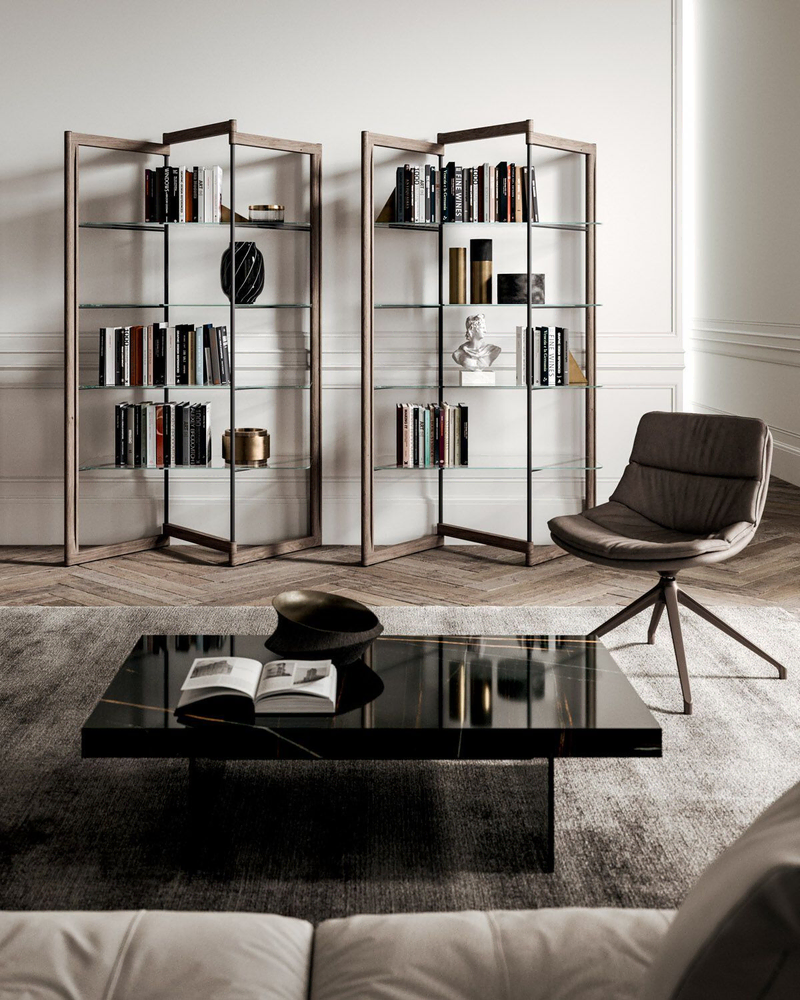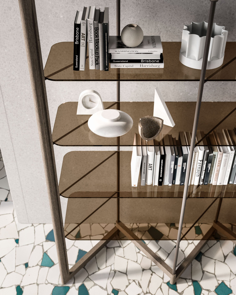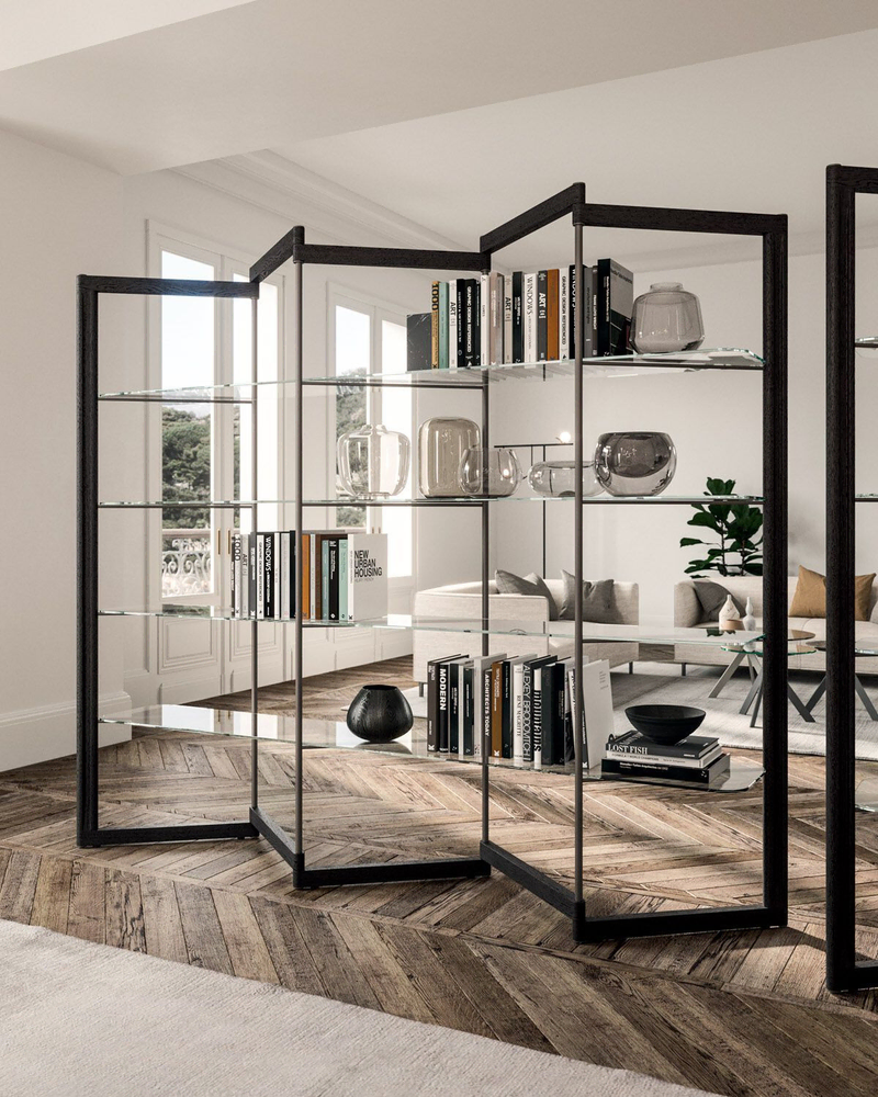The PANTO bookcase challenges traditional storage solutions with its innovative design, reminiscent of the pantograph tool. Featuring glass shelves of varying depths, this self-supporting unit can adapt its shape and function, making it ideal for those who love to transform their living spaces. Use it as a room divider or mount it against a wall to display your favorite books and decor. Embrace flexibility and style with this unique piece that redefines furniture functionality.