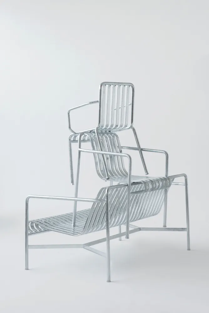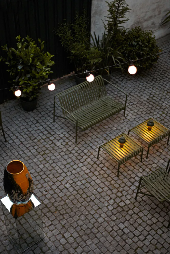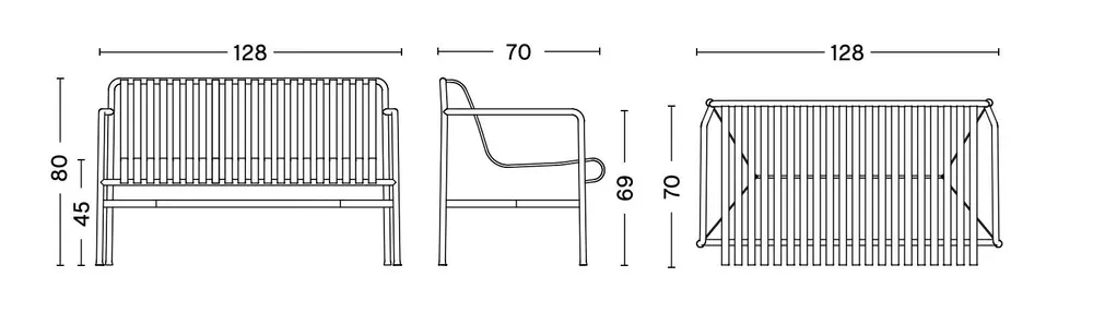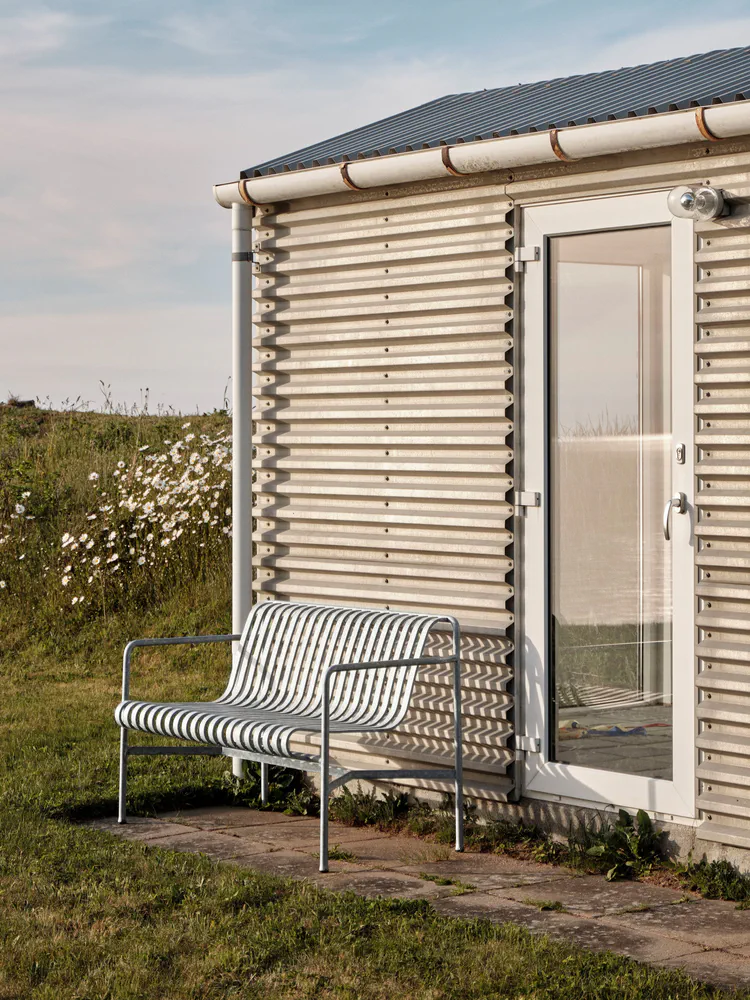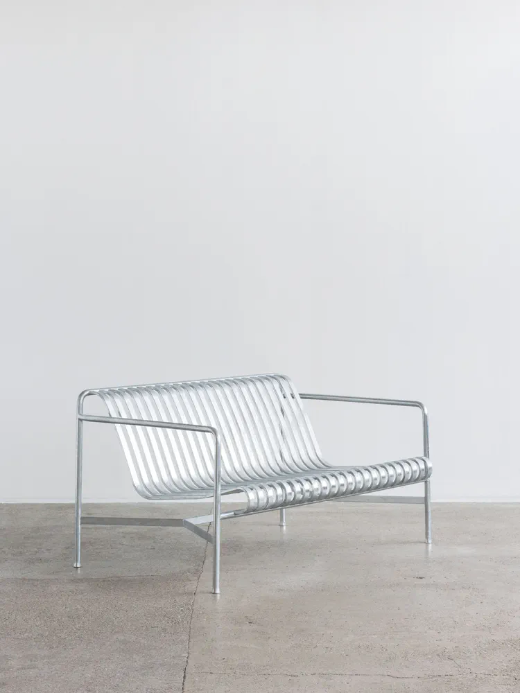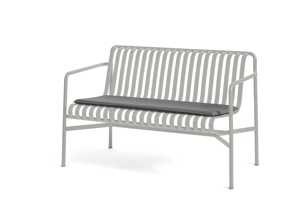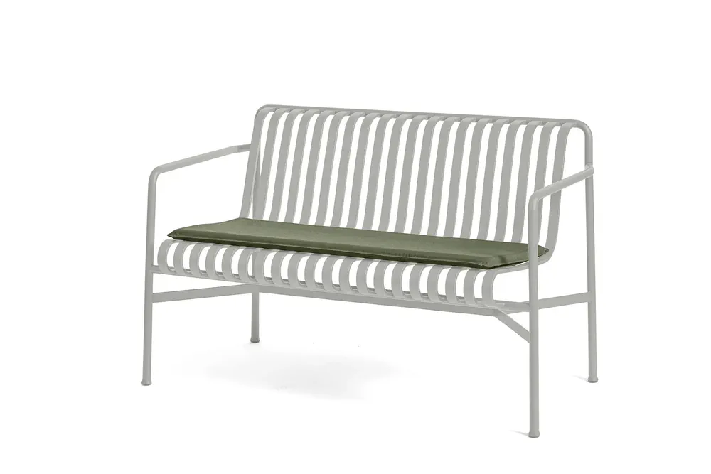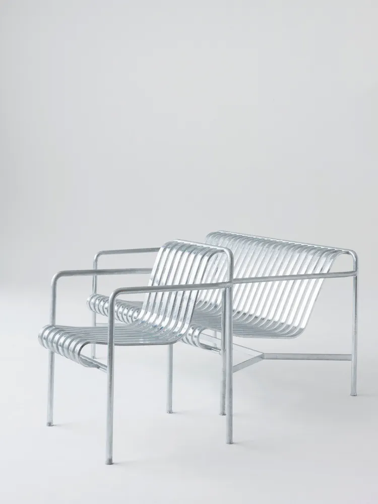 Introducing the PALISSADE Steel Garden Bench with Armrests, designed by Ronan and Erwan Bouroullec. This robust piece from the Palissade collection seamlessly blends into any outdoor space while offering comfort and style. Made with durable powder coated steel, it withstands the elements, making it ideal for gardens, terraces, or cafés. Its modern design and elegant finishes in anthracite, sky grey, olive, and iron red enhance any setting, ensuring it remains a stunning focal point for years to come. Upgrade your outdoor experience with this beautifully crafted bench.
