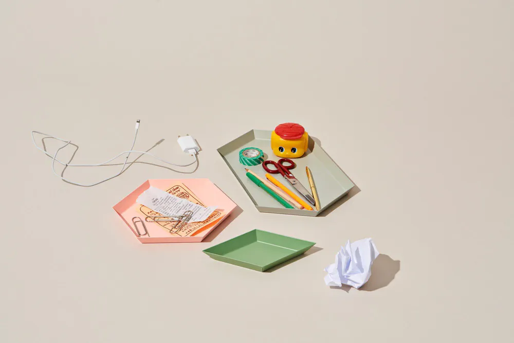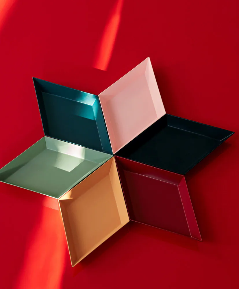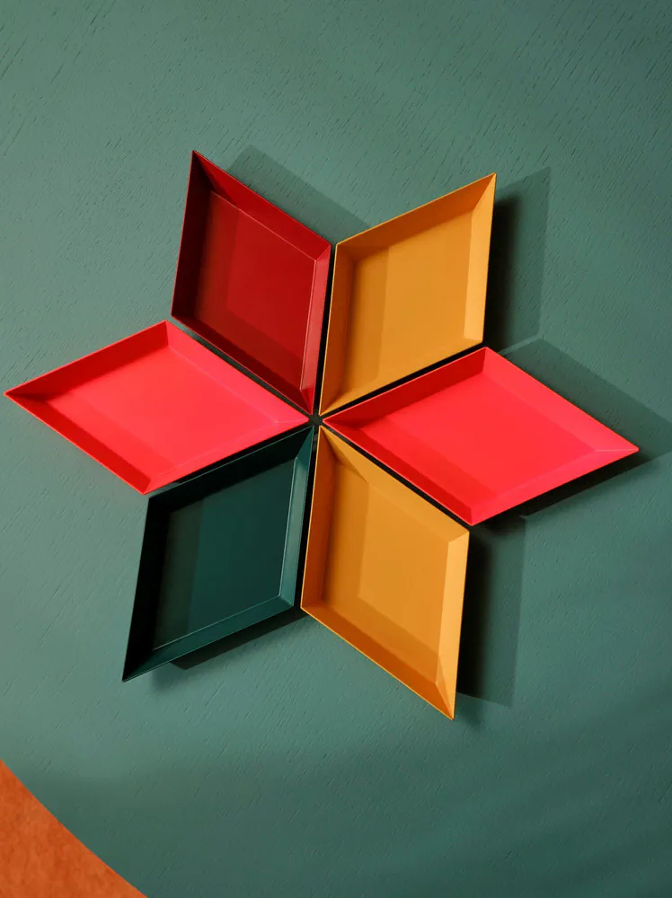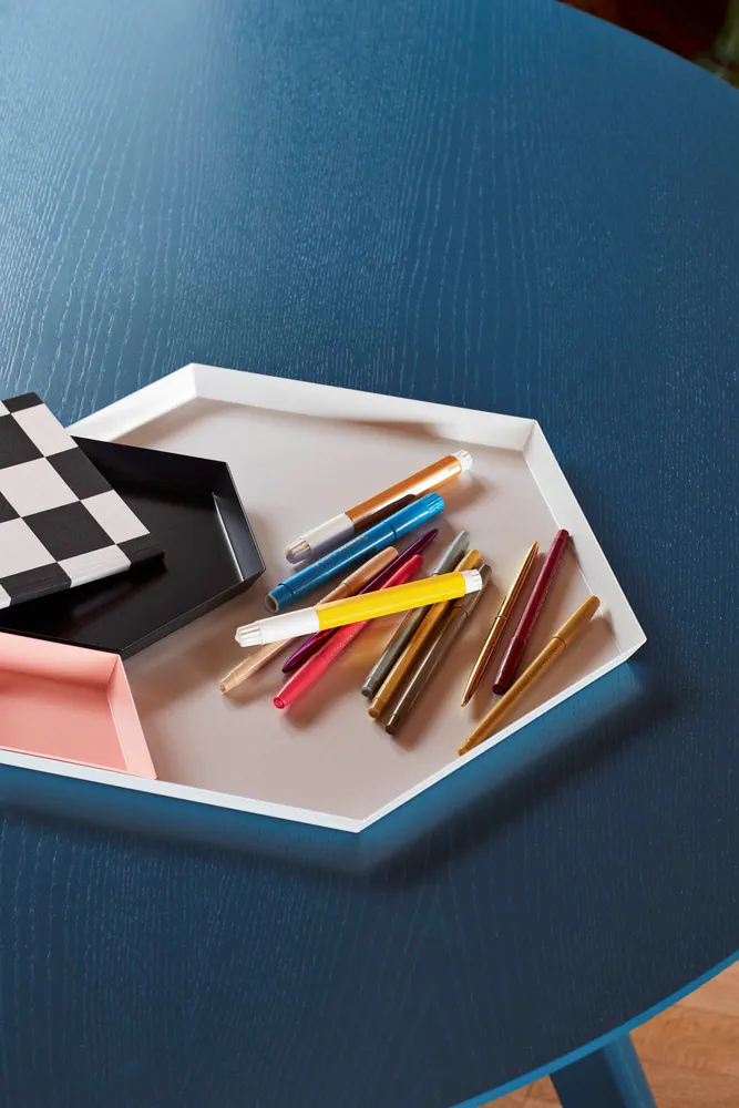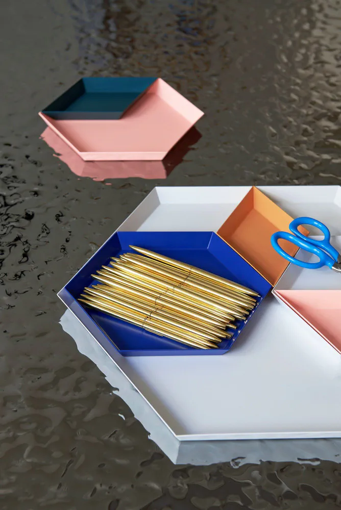 Discover the Kaleido tray collection, a stunning blend of form and color designed by Clara von Zweigbergk for Hay. These steel trays are not only versatile but also add a pop of color to any space. Use them individually for striking decor or nest them together for imaginative arrangements. Perfect for serving or as stylish accents in your home, these trays combine aesthetics with functionality. Elevate your kitchen and living space with a piece that showcases artistic design and practical use.