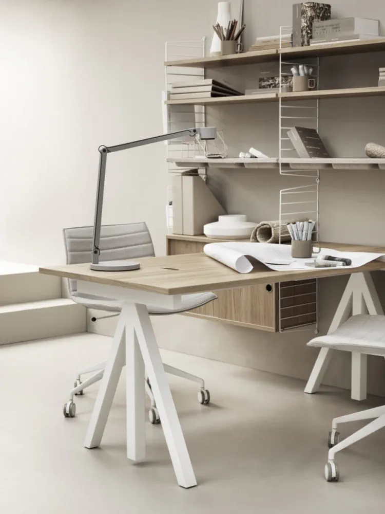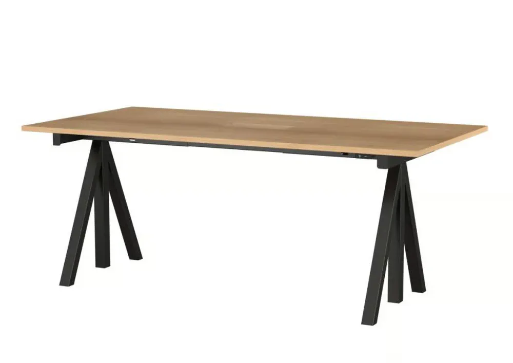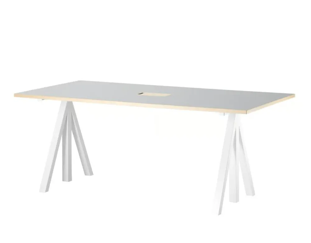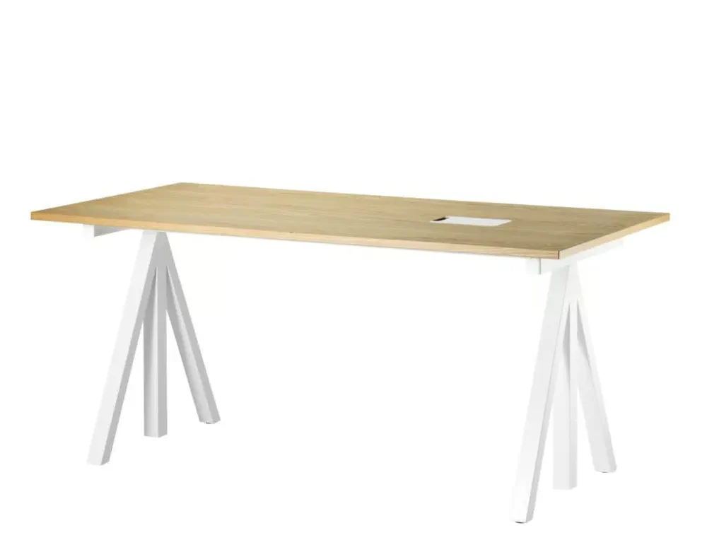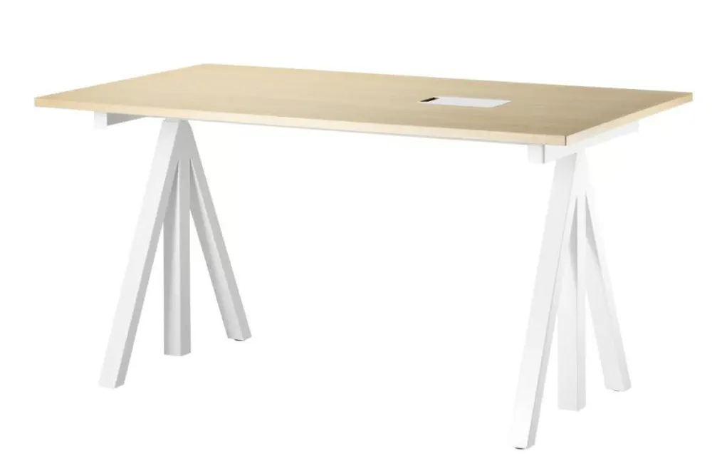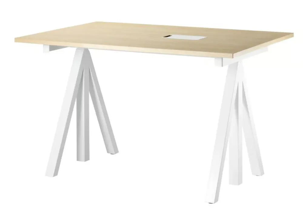 Elevate your workspace with the WORKS office desk, a stunning blend of steel and wood, designed for flexibility and functionality. With adjustable height settings, you can create your perfect workstation whether at home or in the office. Offered in various widths and depths, this desk adapts to your needs and offers seamless cable management. Complement it with the String® shelving system for enhanced storage options. Bring Scandinavian design into your workspace with this versatile desk that caters to modern working lifestyles.