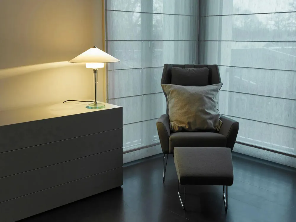 Discover the elegant WG 27 Metal Table Lamp, a stunning addition to any home decor. Designed by Wilhelm Wagenfeld, this lamp features a sleek nickel-plated metal body and a fabric-covered synthetic shade that exudes sophistication. Ideal for those seeking a contemporary touch, its unique design pays homage to Bauhaus aesthetics while ensuring safety with modern materials. Perfect for ambient lighting in living rooms or bedrooms, this lamp not only enhances your space but also serves as a piece of art. Illuminate your home with this exquisite and functional lighting solution.