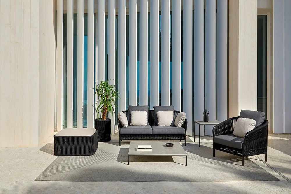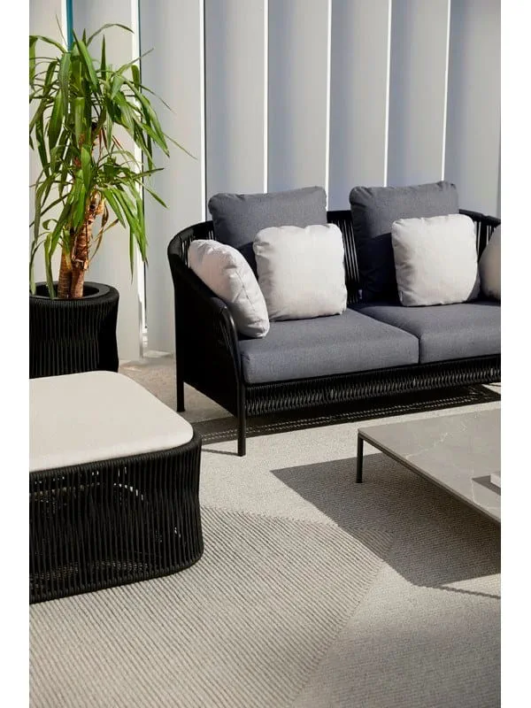 Experience the elegance and comfort of the Weave 2 Seater Rope Garden Sofa. Meticulously handcrafted, this sofa features a robust powder-coated aluminium frame and soft, high-resistance polyurethane foam cushions. With its unique braided polyester rope design available in three stunning color finishes, it’s perfect for relaxing outdoors. The Weave collection has received several prestigious awards, underscoring its blend of functionality and emotional design. Transform your garden with this stylish, durable piece that invites relaxation and enjoyment.